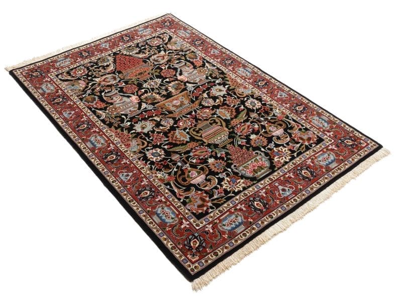 Isfahan Teppich 106 x 157 cm, 600K Knoten, florale Muster, handgeknüpft