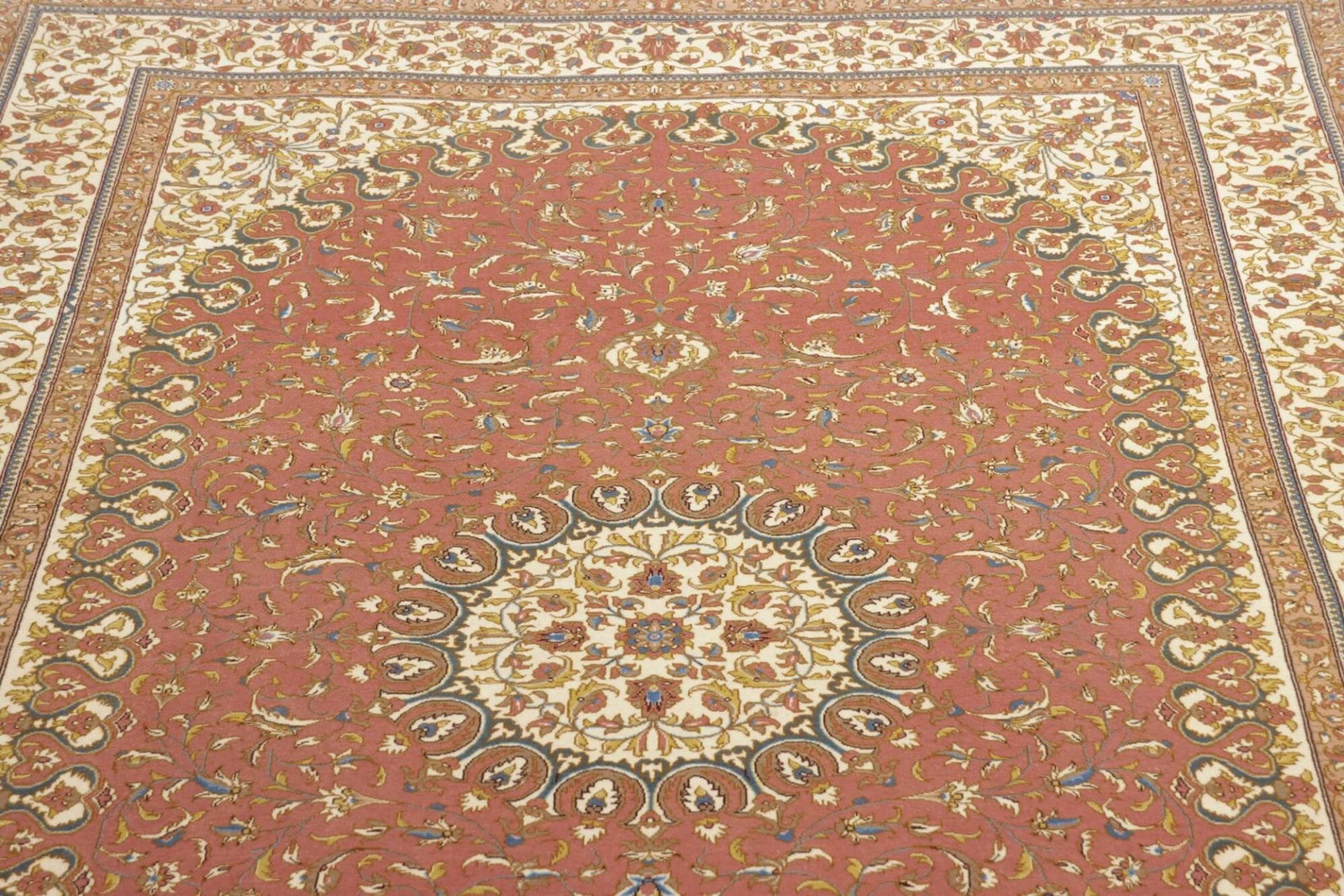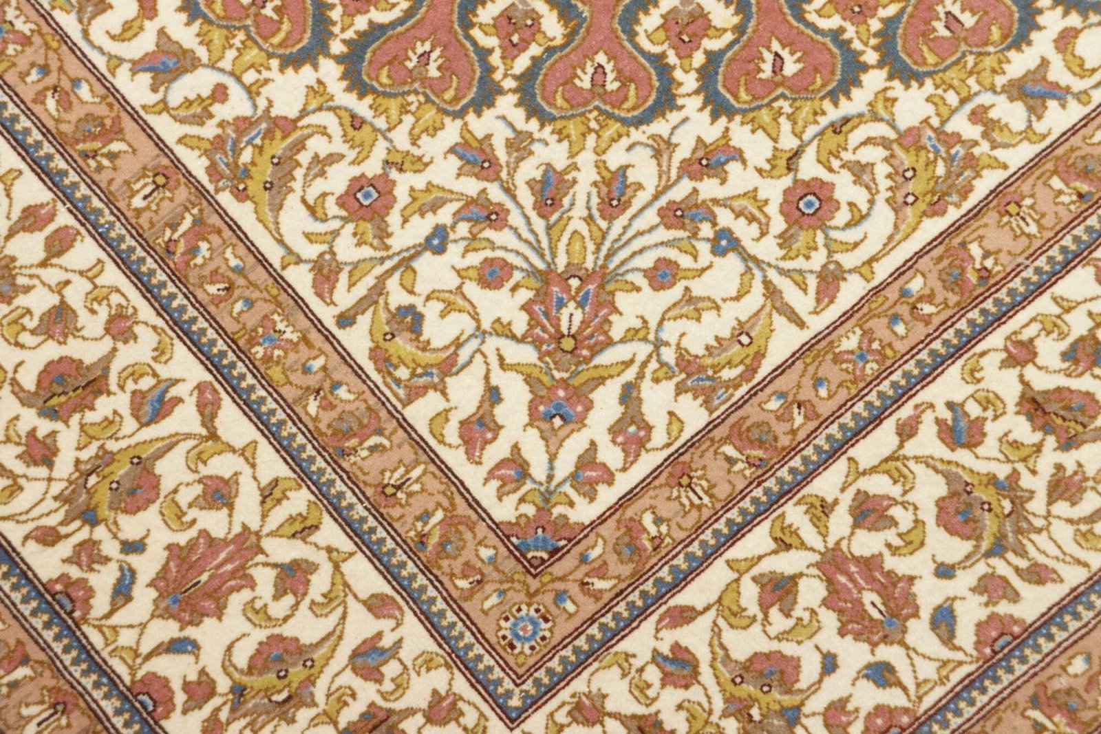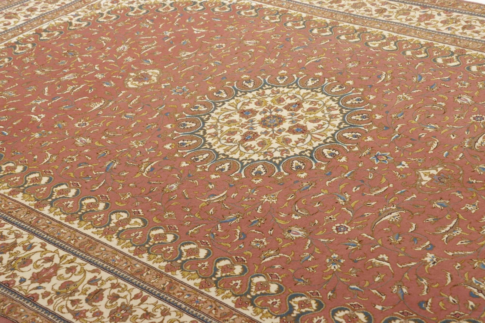 Der Teppich stammt aus Isfahan, einer der bedeutendsten Städte im Iran, bekannt für ihre außergewöhnliche Teppichkunst. Isfahan ist berühmt für ihre traditionellen Teppiche, die oft als die schönsten der Welt angesehen werden. Diese Stadt ist nicht nur ein kulturelles Zentrum, sondern auch ein Ort, an dem Jahrhunderte alte Traditionen lebendig gehalten werden. Die Teppichweber in Isfahan haben ihre Techniken über Generationen perfektioniert, und ihre Kunstwerke sind meist mit komplexen Mustern und leuchtenden Farben versehen, die oft kulturelle Geschichten erzählen.