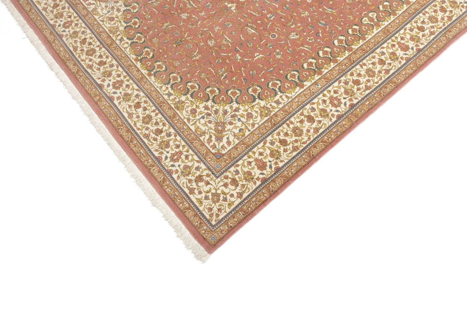 ca. 340x250cm Handgeknüpfter semiantiker Perserteppich Täbriz Mahi Fischmuster mit Seidenanteil W1(#238)