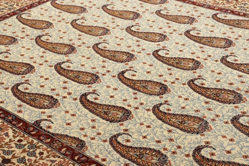 Ein echter Isfahan Teppich zeichnet sich durch seine handgeknüpfte Technik, die feinen Materialien und die detaillierten Muster aus. Authentische Perserteppiche sind oft mit einen Herkunftssiegel oder einer Zertifizierung versehen. Auch das Gewicht und die Haptik können Anzeichen für die Echtheit sein – echte Perserteppiche sind in der Regel schwerer und luxuriöser in der Anmutung.