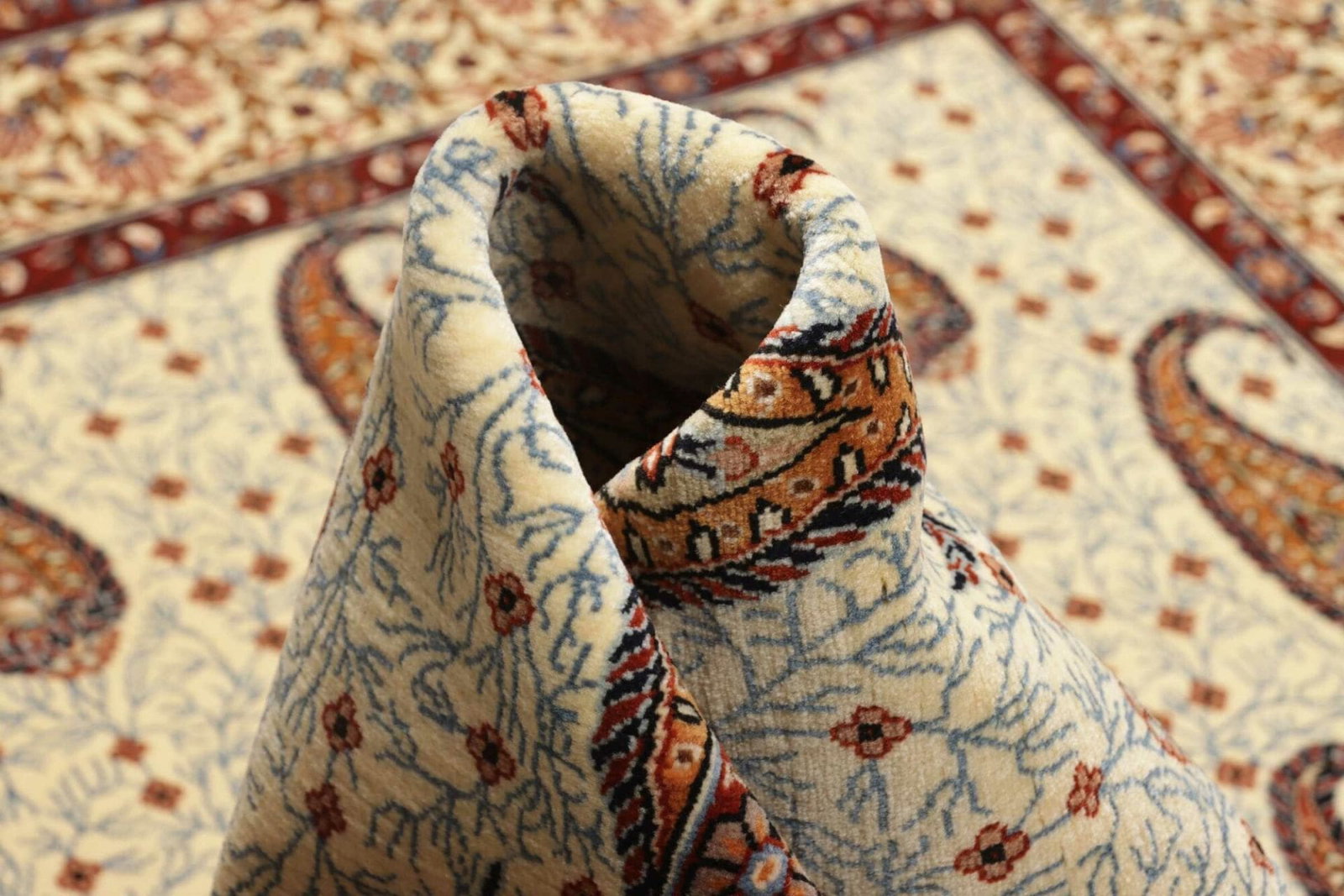 Ein Isfahan Teppich ist mehr als nur ein Bodenbelag; er erzählt Geschichten aus einer fernen Zeit und ist ein Symbol für Handwerkskunst. Mit seinen 600K Knoten gilt er als besonders hochwertig und bietet eine außergewöhnliche Detailtreue. Zudem verleiht die handgeknüpfte Technik jedem Teppich eine individuelle Note – kein Stück ist wie das andere. Der Teppich zeigt meisterhafte Fähigkeiten der Weber, die Jahre oder sogar Jahrzehnte an Erfahrung in jede Knüpfung einfließen lassen. Darüber hinaus steigert ein Isfahan Teppich den Wert Ihrer Inneneinrichtung und ist eine hervorragende Investition.