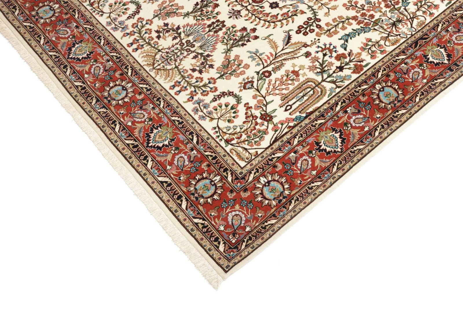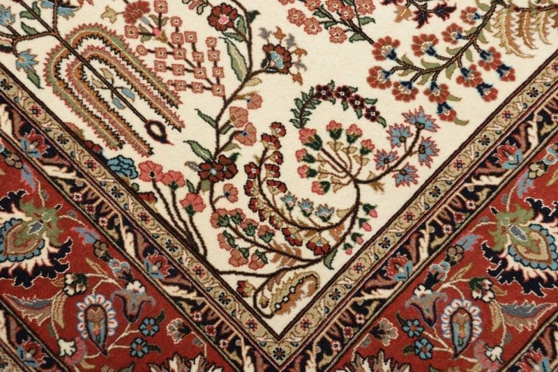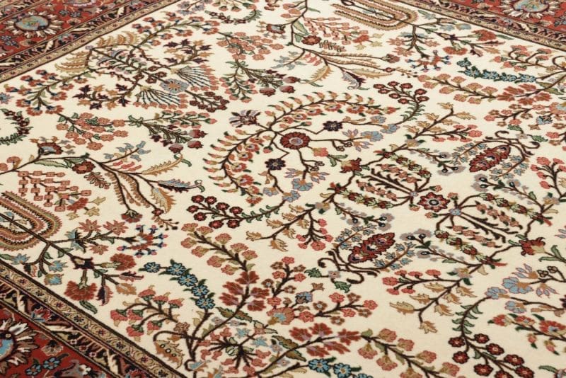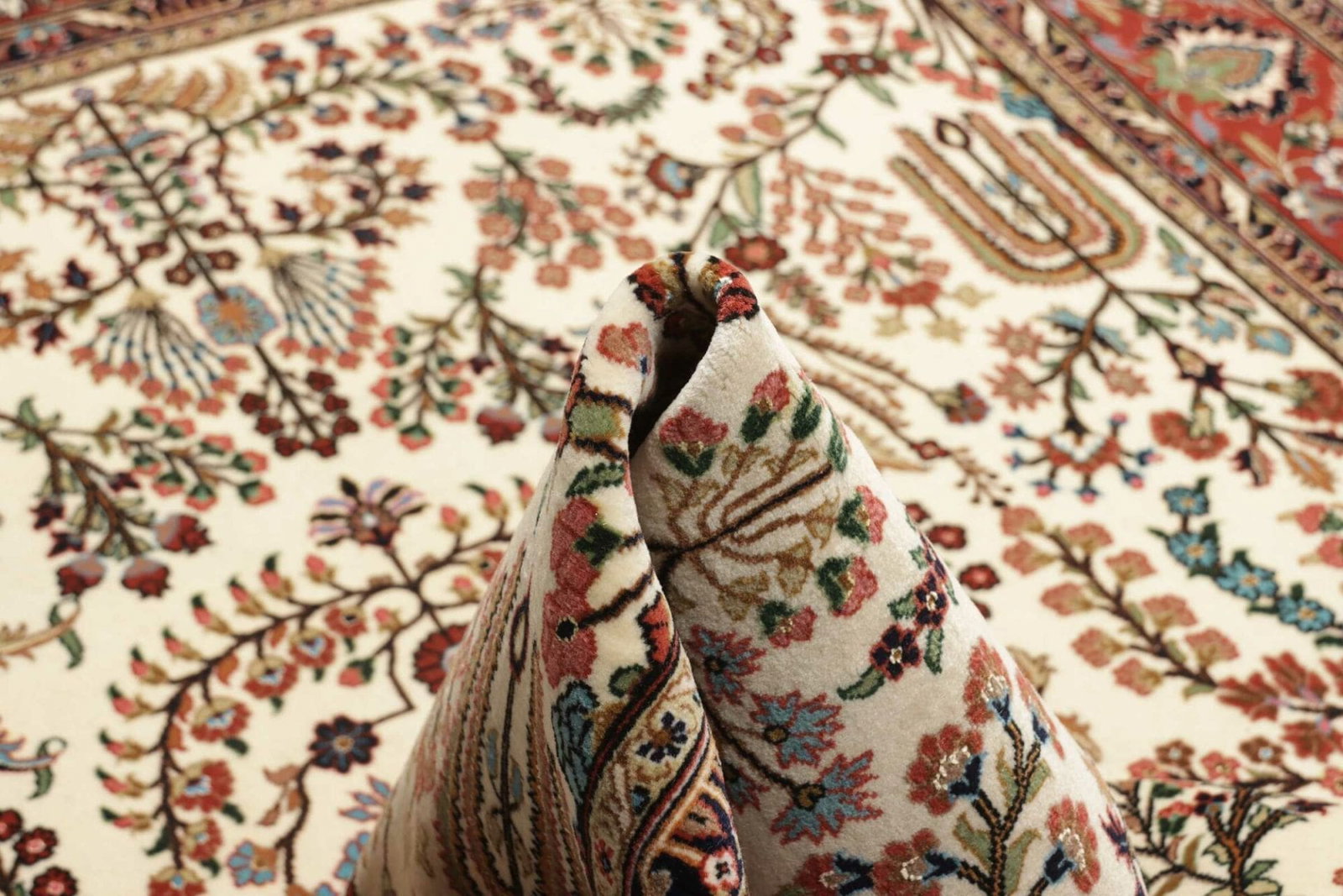 Die Knotendichte von 600.000 Knoten sorgt dafür, dass die Details der Muster klar und scharf hervortreten, was den Teppich besonders ansprechend macht. Ein Isfahan Teppich ist somit nicht nur ein Bodenbelag, sondern ein Kunstwerk, das dazu beiträgt, die Schönheit und Eleganz eines Raumes zu unterstreichen.