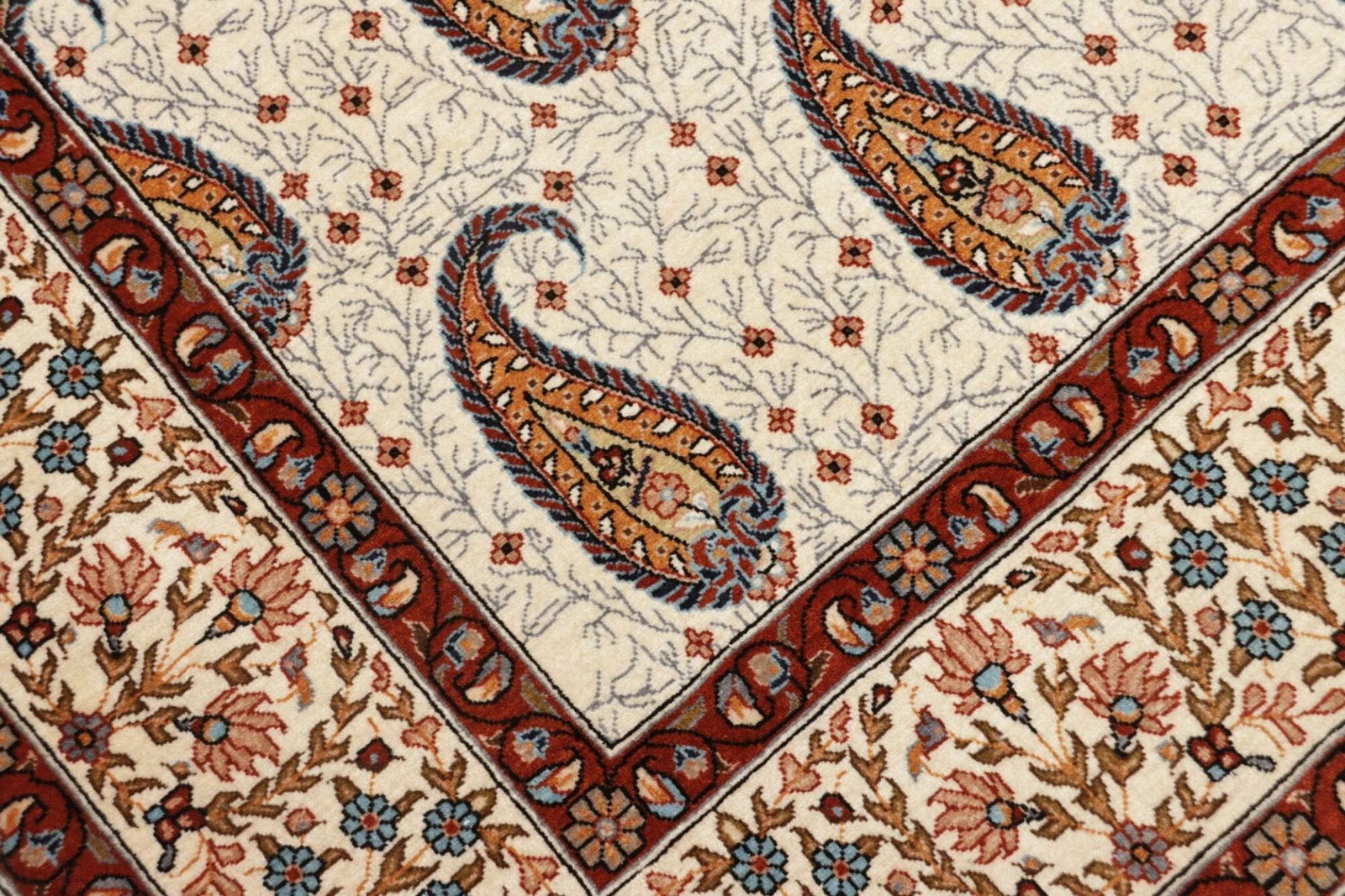 Handgeknüpfter Isfahan Teppich | Knotendichte: ca. 600.000 Knoten/m² | Material: 100% Schurwolle (Flor) und 100% Seide (Kette) | Größe: 147 x 209 cm | Höhe: ca. 5-7 mm | Herkunft: Iran | Exquisite florale Muster | In ausgezeichnetem Zustand