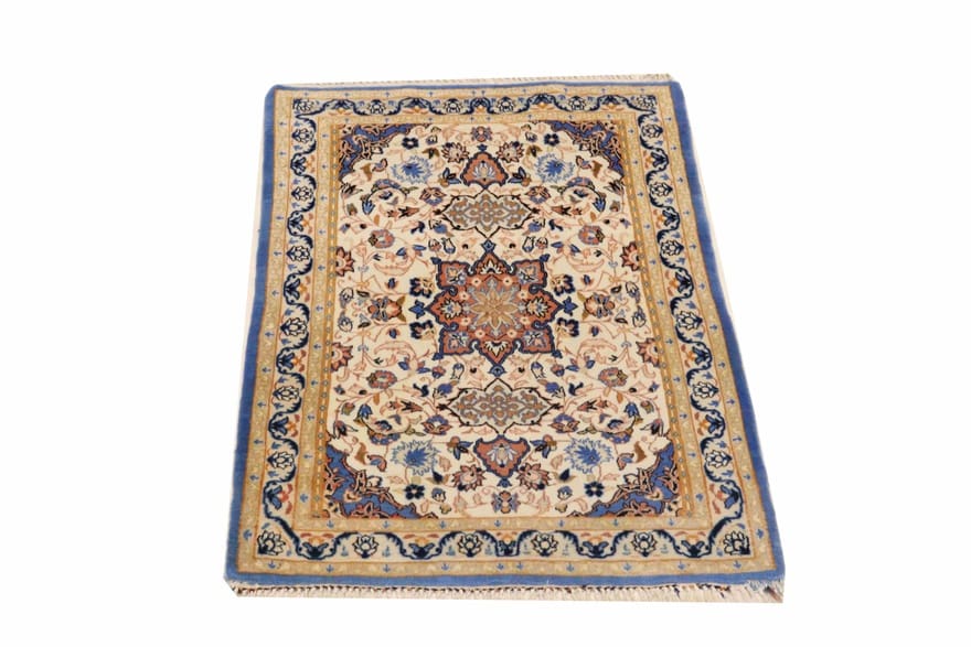 Isfahan Teppich 99×64 cm, cremefarben, Bergamottenmuster, handgeknüpft