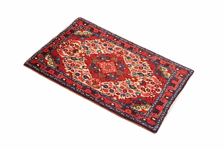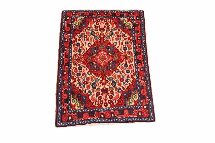 Handgeknüpfter Jozan Teppich | Knotendichte: 160.000 – 200.000 Knoten/m² | Material: Handgesponnene Wolle und Baumwolle | Größe: 105×63 cm | Farbe: Weiß/Beige | Zustand: Neu | Ursprung: Iran / Persien | Dicke: ca. 10 mm | Gewicht: ca. 2 kg