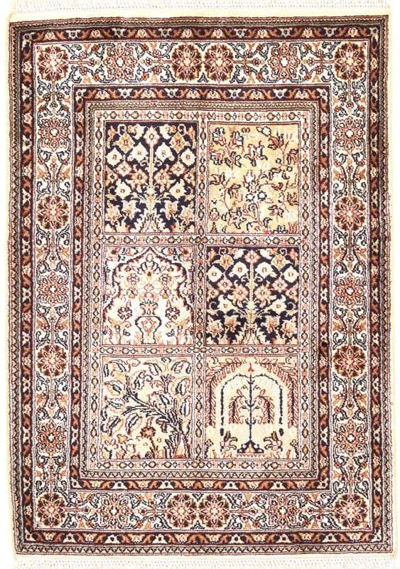 Kahmir Seidenteppich 91×64 cm, feine Muster, handgeknüpft, Orientteppich