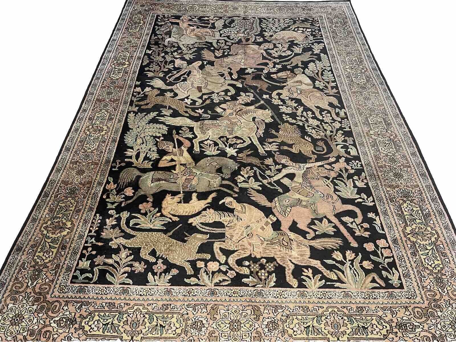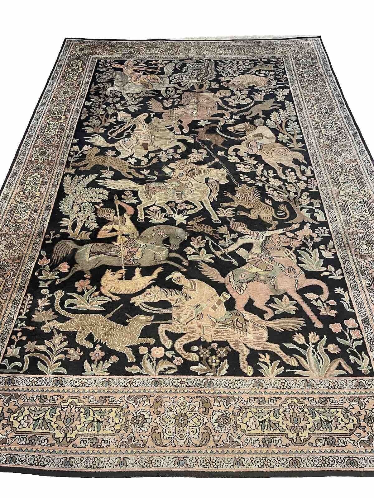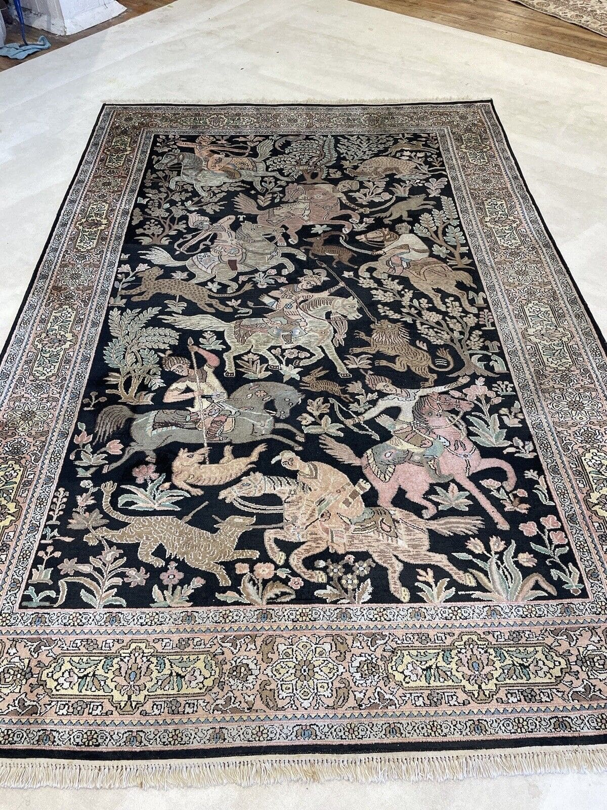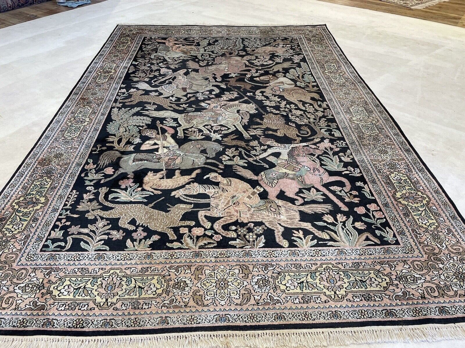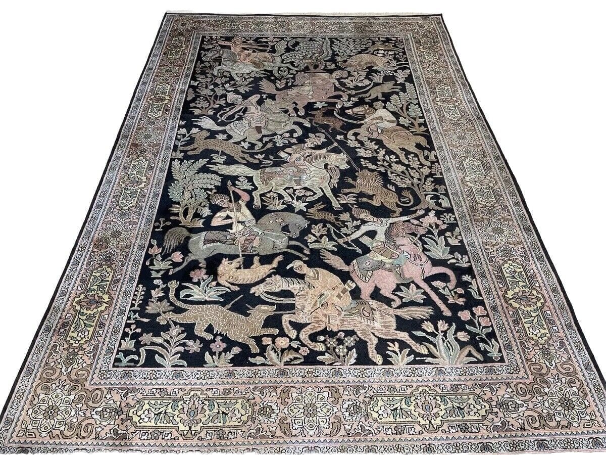 Kaschmir Jagt Muster Teppich 270×185 cm – 320.000 Knoten – Reine Seide, Handgeknüpft, Perserteppich H1