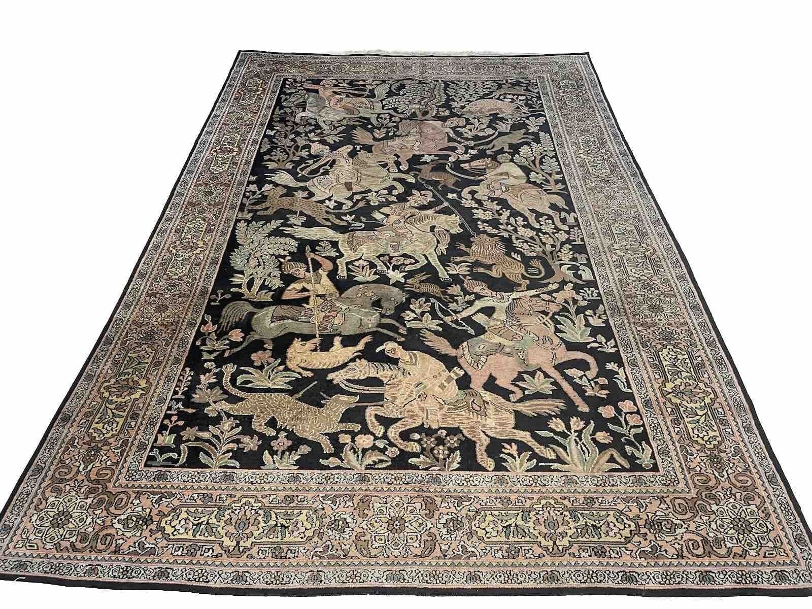 Der Jagt Muster Teppich sticht durch sein außergewöhnliches Design hervor. Jagdmotive sind in der Welt der Teppichkunst traditionell dazu gedacht, die Jagd zu feiern, die oft einen symbolischen Wert hat. Diese Motive verbinden Geschichte und Kunst und erzählen Geschichten von Mut und Abenteuer. Die harmonische Farbpalette und die detaillierte Abbildung von Tieren und Natur schaffen eine ansprechende Atmosphäre in Ihrem Zuhause. Die Kombination aus traditionellen Mustern und klassischen Farben macht diesen Teppich zu einem zeitlosen Kunstwerk.