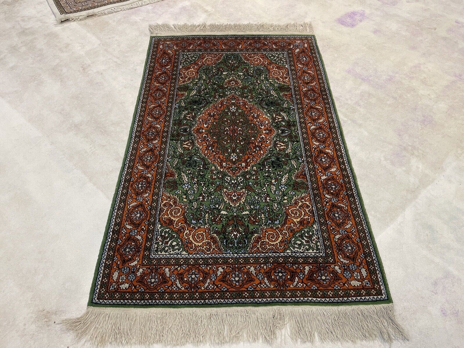 Kaschmir Orientteppich 150×90 cm – Hochwertige reine Seide, handgeknüpft, Top Qualität und Design, geprüft und professionell gewaschen, handgeknüpft, Perserteppich