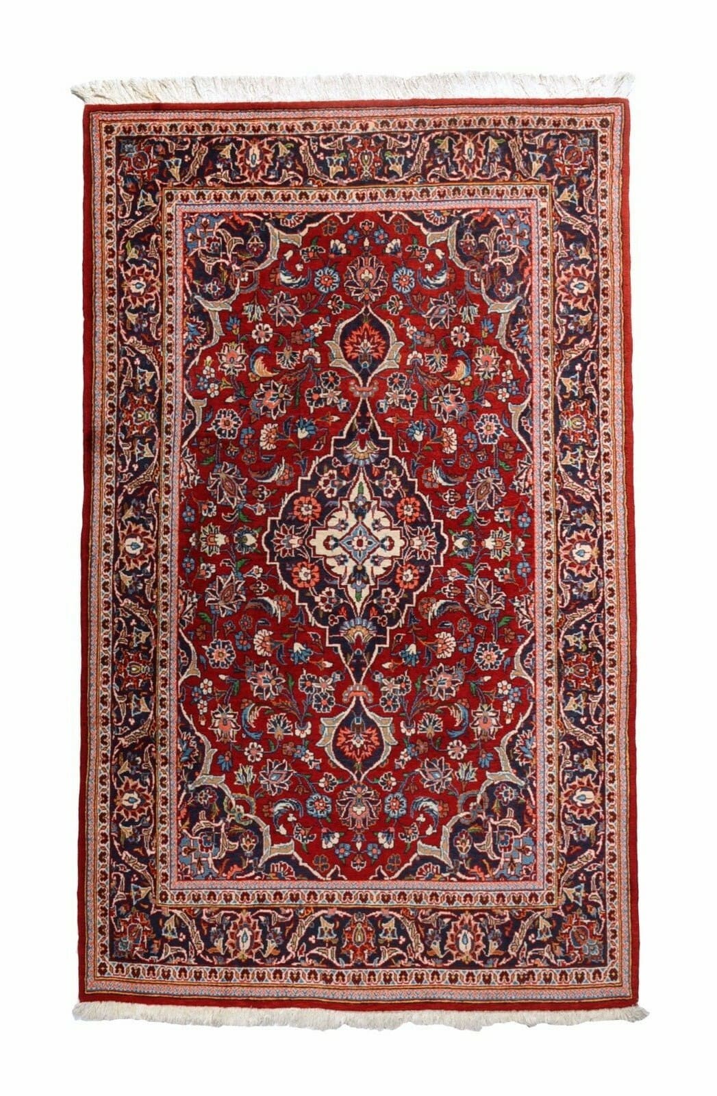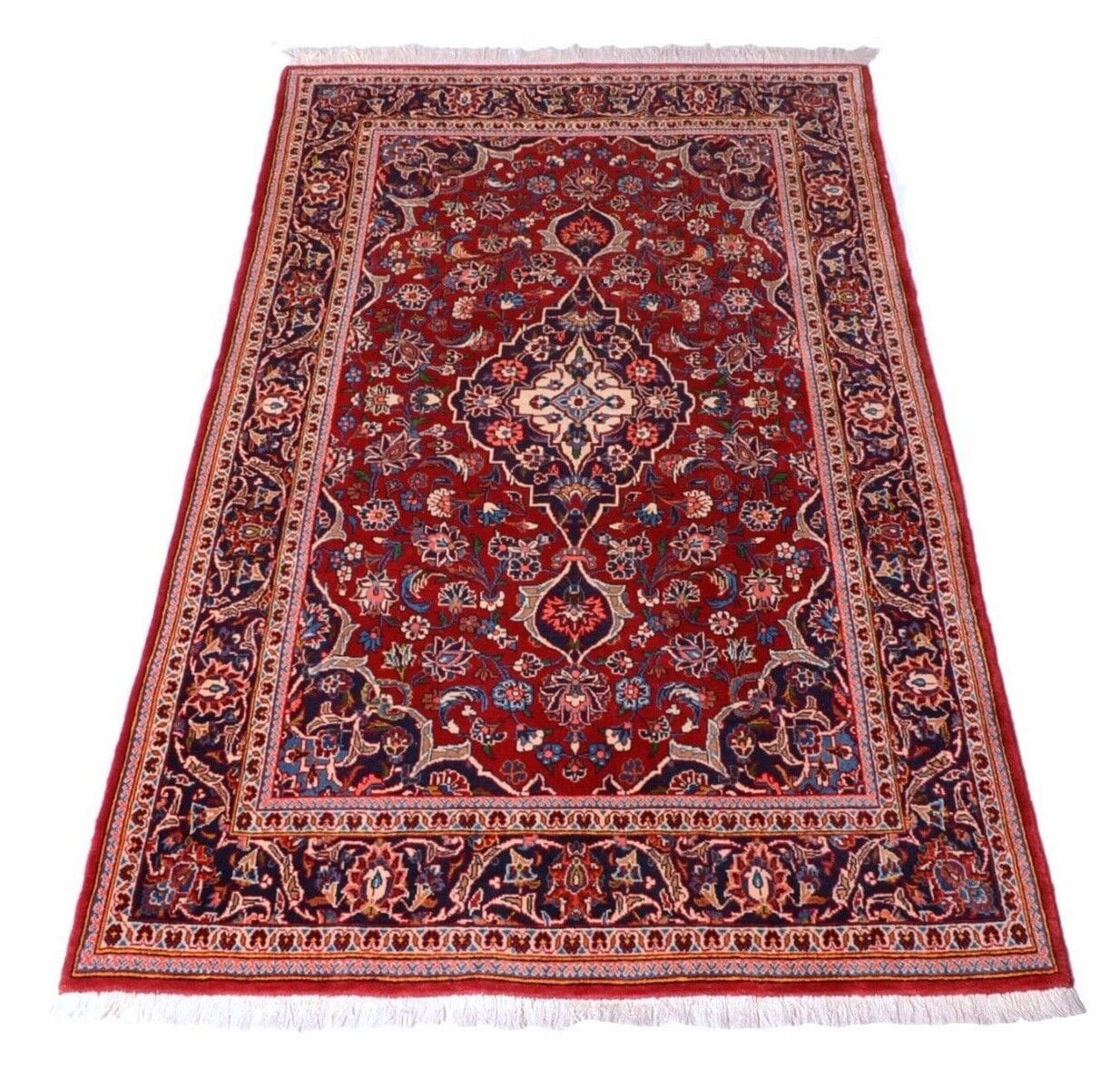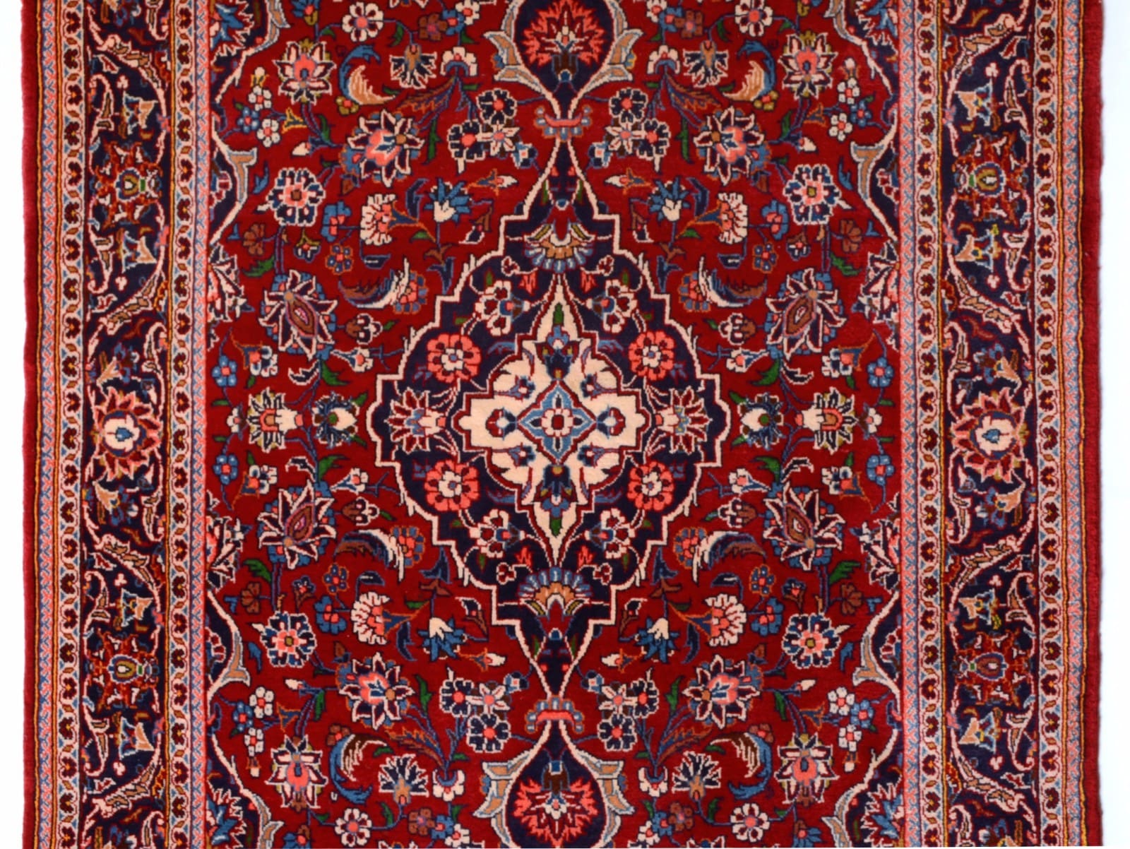 Handgeknüpfter Kashan-Teppich | Größe: 222 x 136 cm | Knotendichte: 350.000 Knoten/m² | Material: 100% Schurwolle, Kette aus 100% Baumwolle | Zustand: Perfekt, unbenutzt | Alter: 15-20 Jahre | Herkunft: Persien | Florhöhe: ca. 8 mm | Muster: Florales Medaillon | Für Fußbodenheizung geeignet