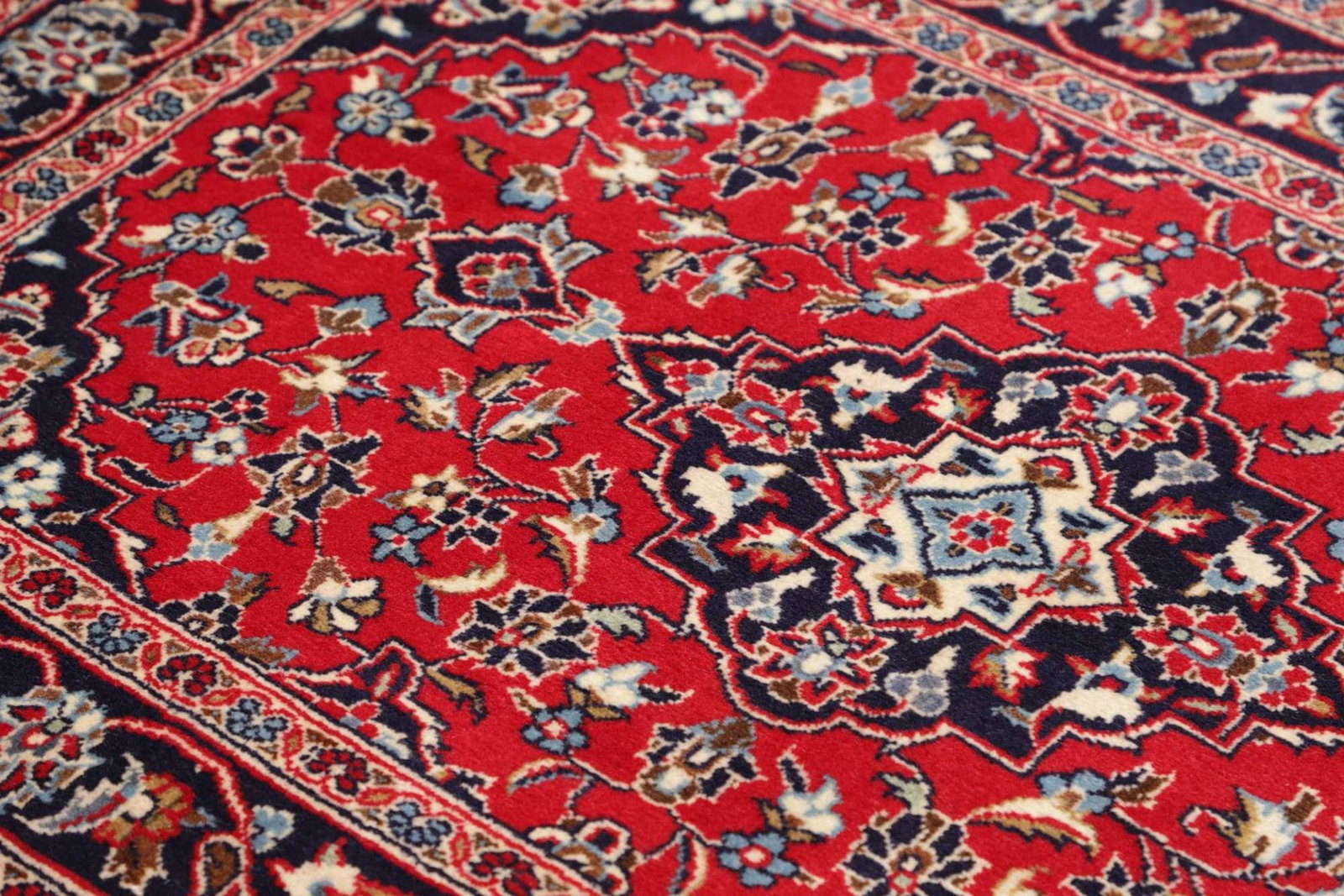 Kashan Teppich | Knotendichte: ca. 200.000 Knoten/m² | Flor: 100% Schurwolle | Kette: 100% Baumwolle | Größe: 101 x 149 cm | Herkunft: Iran | Zustand: Sehr gut | Handgeknüpfte Qualität
