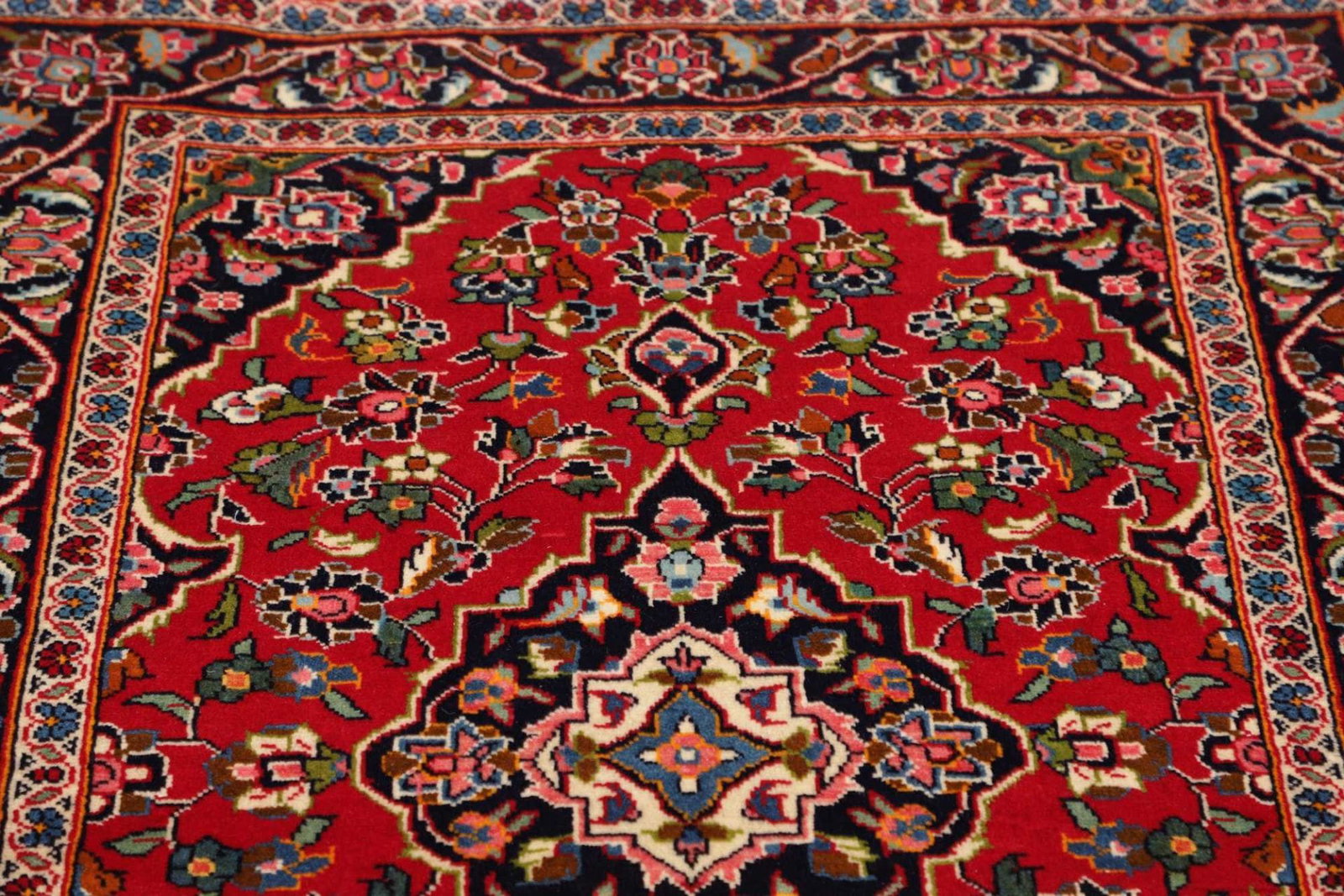 Kashan Teppich | Knotendichte: ca. 200.000 Knoten/m² | Flor: 100% Schurwolle | Kette: 100% Baumwolle | Größe: 103 x 143 cm | Verarbeitung: Handgeknüpft | Herkunft: Iran | Zustand: Sehr gut