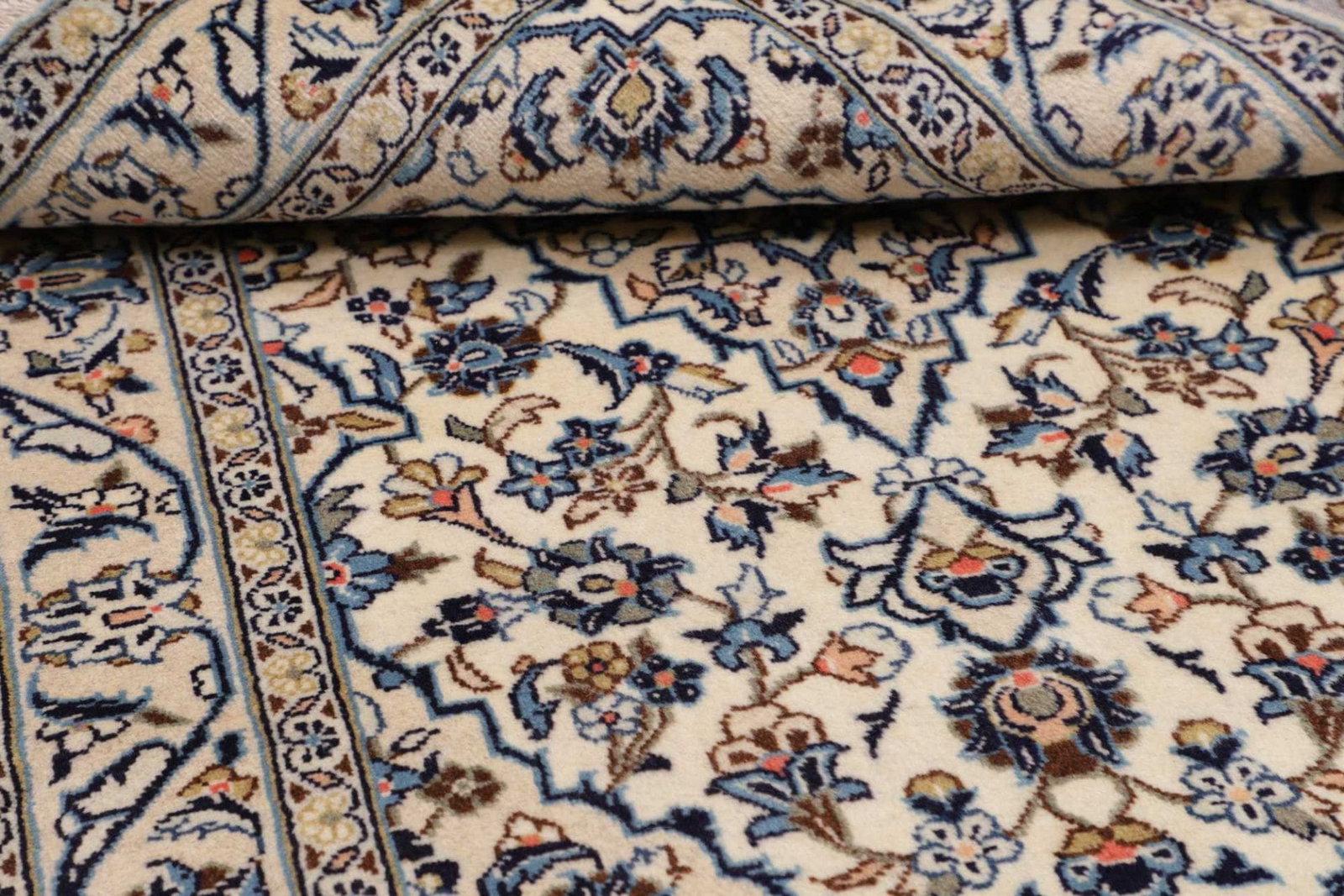Ein weiterer Pluspunkt des Kashan Teppichs ist seine außergewöhnliche Anpassungsfähigkeit. Ob im Wohnzimmer, Schlafzimmer oder sogar in einem Büro – dieser Teppich passt sich jedem Wohnstil an, von klassisch bis modern. Darüber hinaus ist er leicht zu reinigen und zu pflegen, was ihn zu einer idealen Wahl für Haushalte mit Kindern oder Haustieren macht. Jeder Kashan Teppich erzählt seine eigene Geschichte und wird mit den Jahren noch schöner, da er mit der Zeit eine patinaartige Oberfläche entwickelt, die ihm Charakter verleiht.