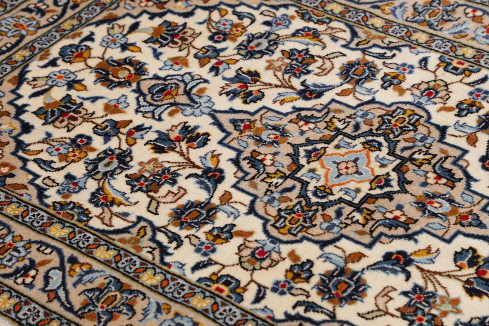Kashan Teppich | Knotendichte: ca. 200.000 Knoten/m² | Material: 100% Schurwolle (Flor), 100% Baumwolle (Kette) | Größe: 103 x 152 cm | Zustand: Sehr gut | Herkunft: Iran | Verarbeitung: Handgeknüpft | Provenienz: Kashan
