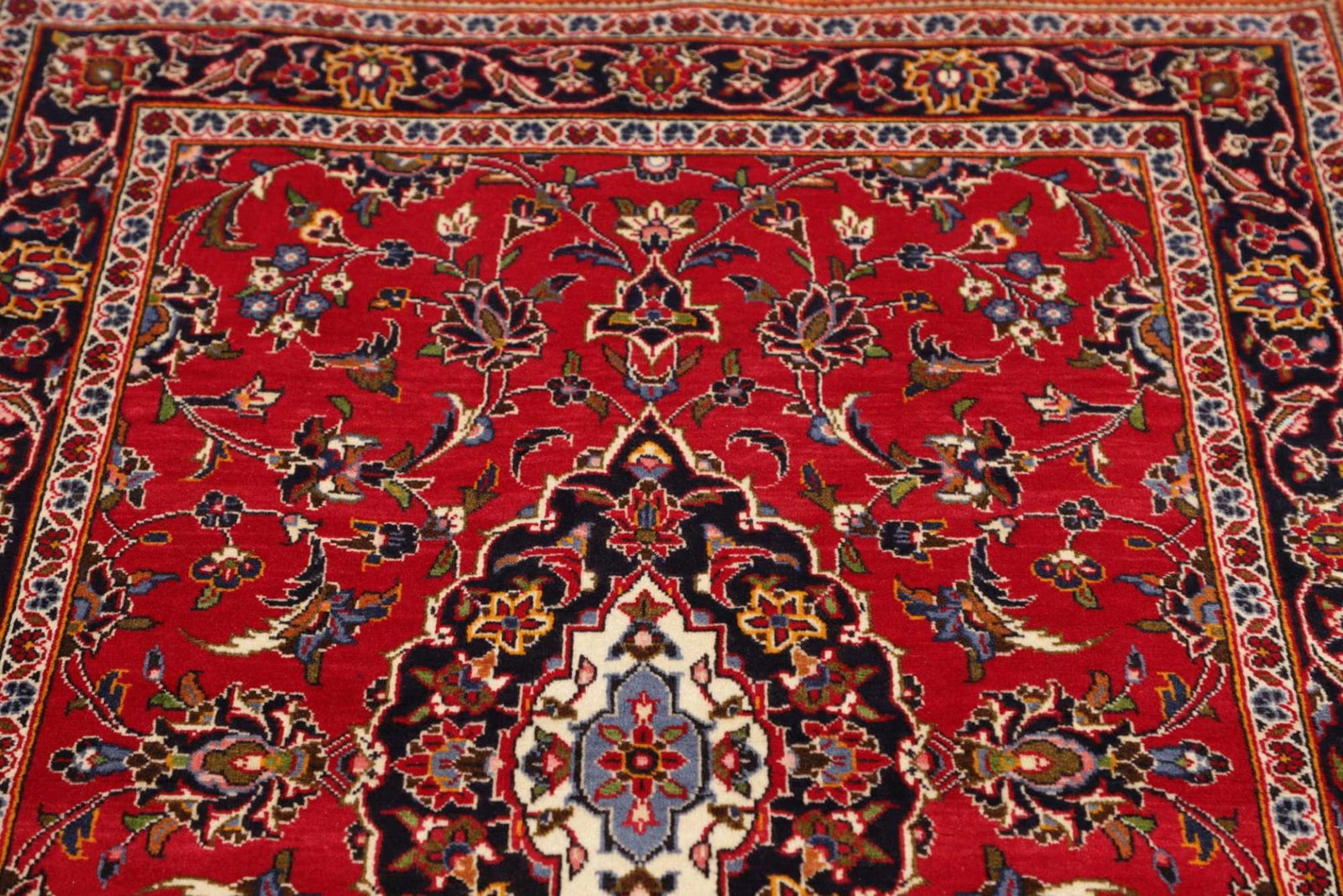 Kashan Teppich | Größe: 107 x 159 cm | Knotendichte: ca. 200.000 Knoten/m² | Flor: 100% Schurwolle | Kette: 100% Baumwolle | Handgeknüpfte Qualität | Herkunft: Iran | Zustand: sehr gut