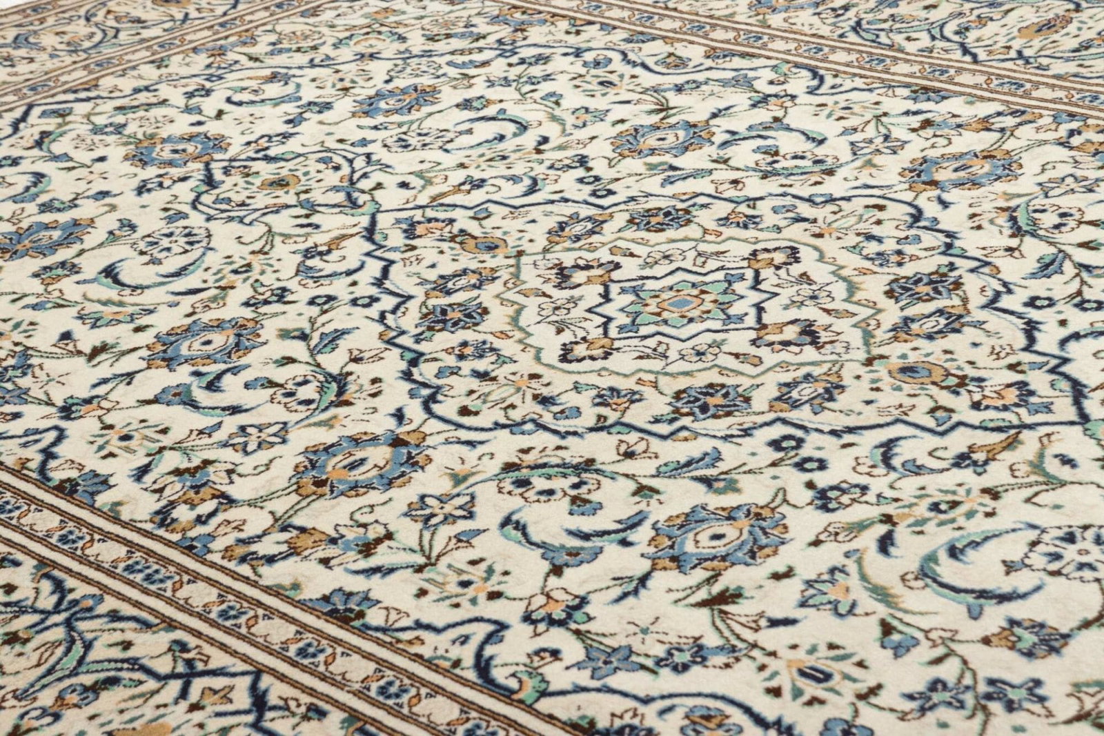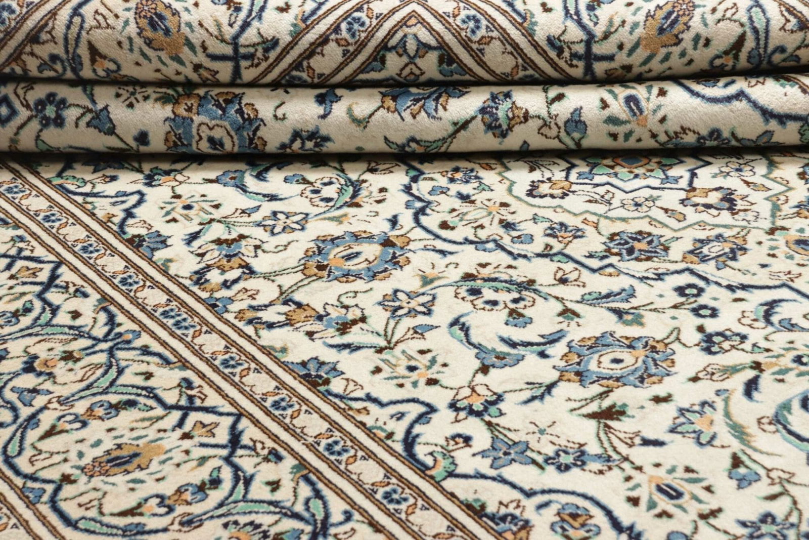 Dieser handgeknüpfte Kashan Teppich zeichnet sich nicht nur durch seine ästhetischen Merkmale aus, sondern auch durch seine Funktionalität. Er ist ideal für wohnliche Bereiche, da er sowohl Wärme als auch Gemütlichkeit ausstrahlt. Die klassische Eleganz des Teppichs macht ihn zum perfekten Mittelpunkt in jedem Raum, sei es im Wohnzimmer, im Arbeitszimmer oder in einem eleganten Foyer. Dank seiner robusten Natur ist er auch für stark frequentierte Bereiche geeignet.