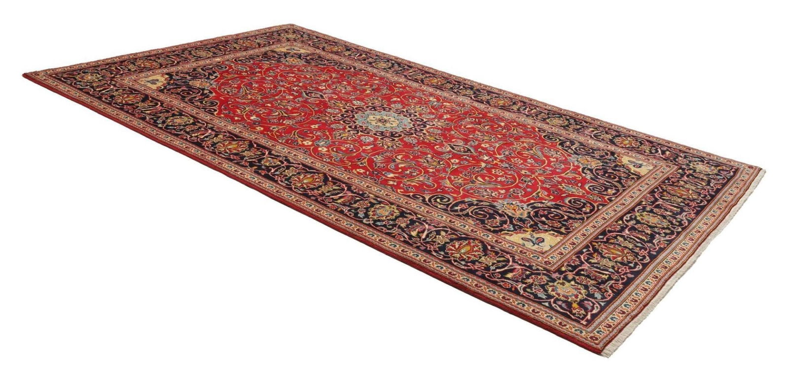 Ein hochwertiger handgeknüpfter Kashan Teppich kann mit der richtigen Pflege und Wartung mehrere Jahrzehnte, sogar Generationen lang halten. Die hohe Knotendichte und die verwendeten Materialien tragen wesentlich zur Langlebigkeit des Teppichs bei.