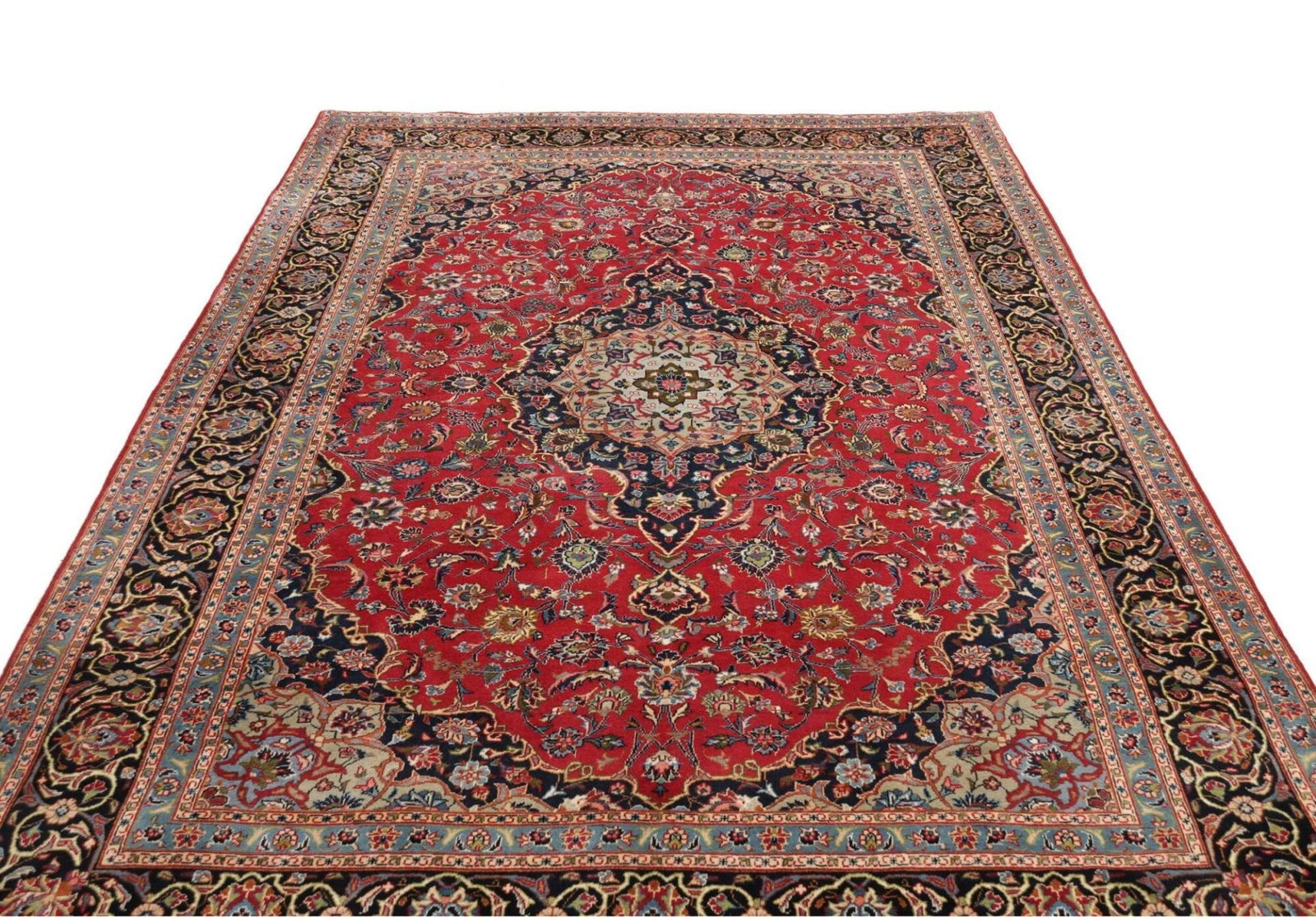 Um die Lebensdauer Ihres Kashan Teppichs zu verlängern, sollten Sie ihn regelmäßig absaugen und bei Bedarf professionell reinigen lassen. Vermeiden Sie direkte Sonneneinstrahlung, um ein Ausbleichen der Farben zu verhindern.