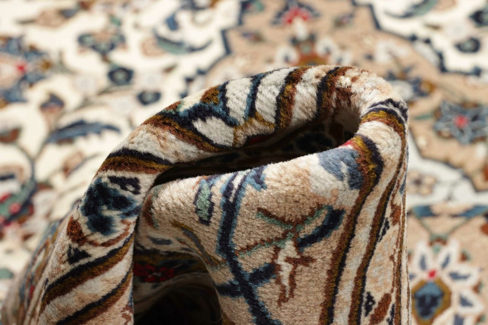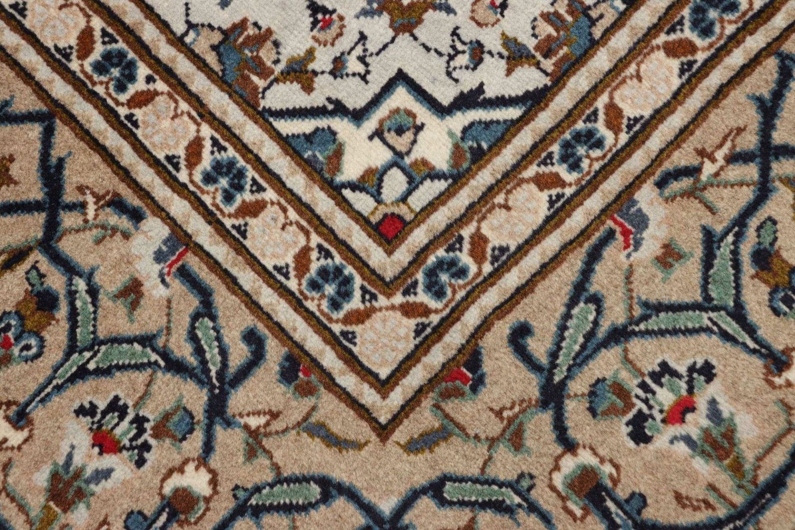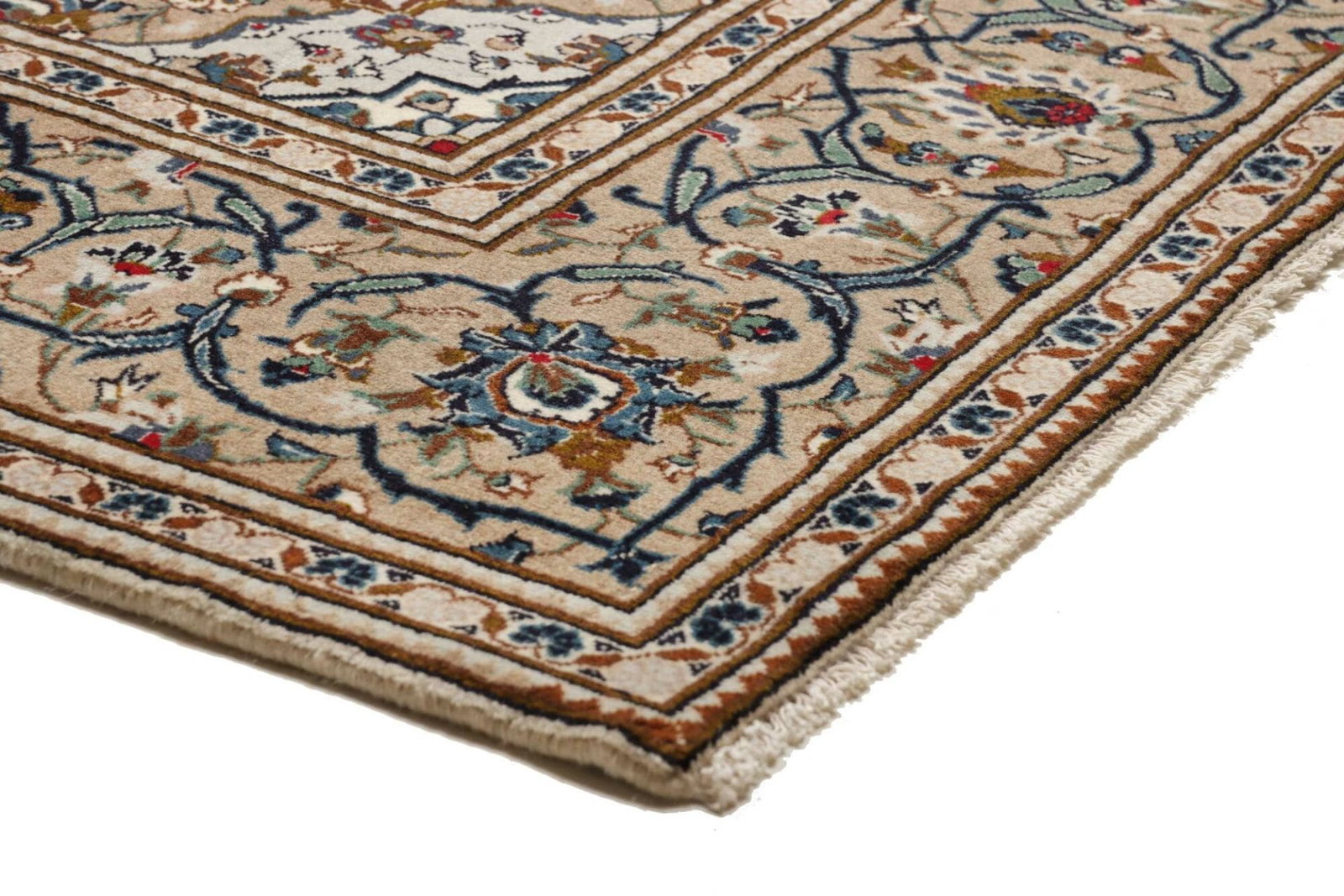 Ein weiterer Vorteil dieses Kashan Teppichs ist seine Pflegeleichtigkeit. Dank der verwendeten Materialien ist der Teppich schmutzabweisend und kann leicht gereinigt werden, was bedeutet, dass er Ihnen viele Jahre Freude bereiten kann. Ein handgeknüpfter Teppich wie dieser spielt eine zentrale Rolle in der traditionellen Iranischen Wohnkultur und wird oft als Erbstück weitergegeben, was seine Bedeutung über Generationen hinweg unterstreicht. Darüber hinaus bietet der Kauf eines solchen Teppichs die Möglichkeit, ein Stück traditioneller Kunst in Ihr Zuhause zu integrieren, das seine Geschichte und Kultur vermittelt.