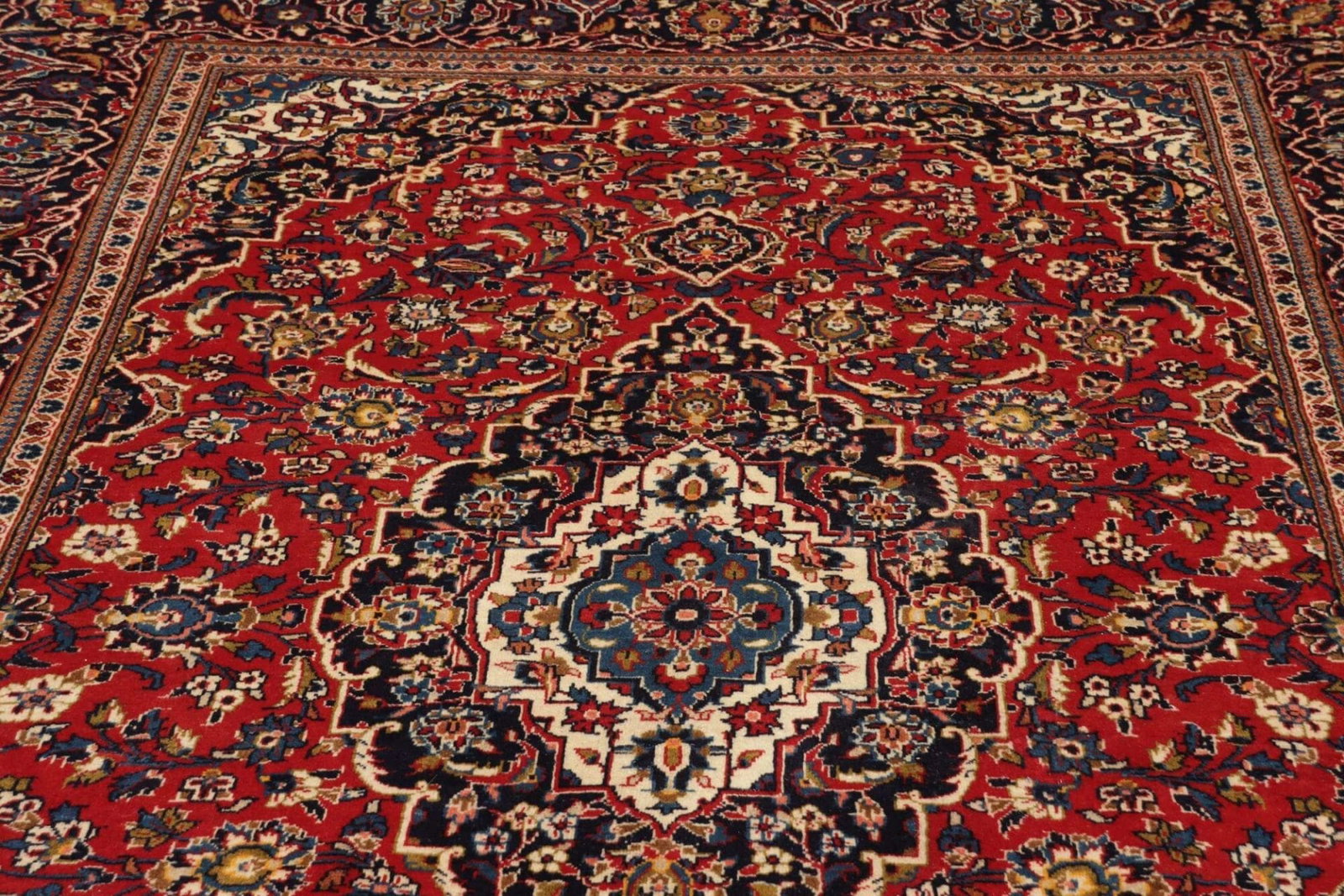Einmerkmal vieler Kashan-Teppiche ist auch die Verwendung von medaillonartigen Motiven, die oft in der Mitte des Teppichs platziert sind. Dies verleiht dem Teppich eine klare Fokussierung und Struktur im Design.