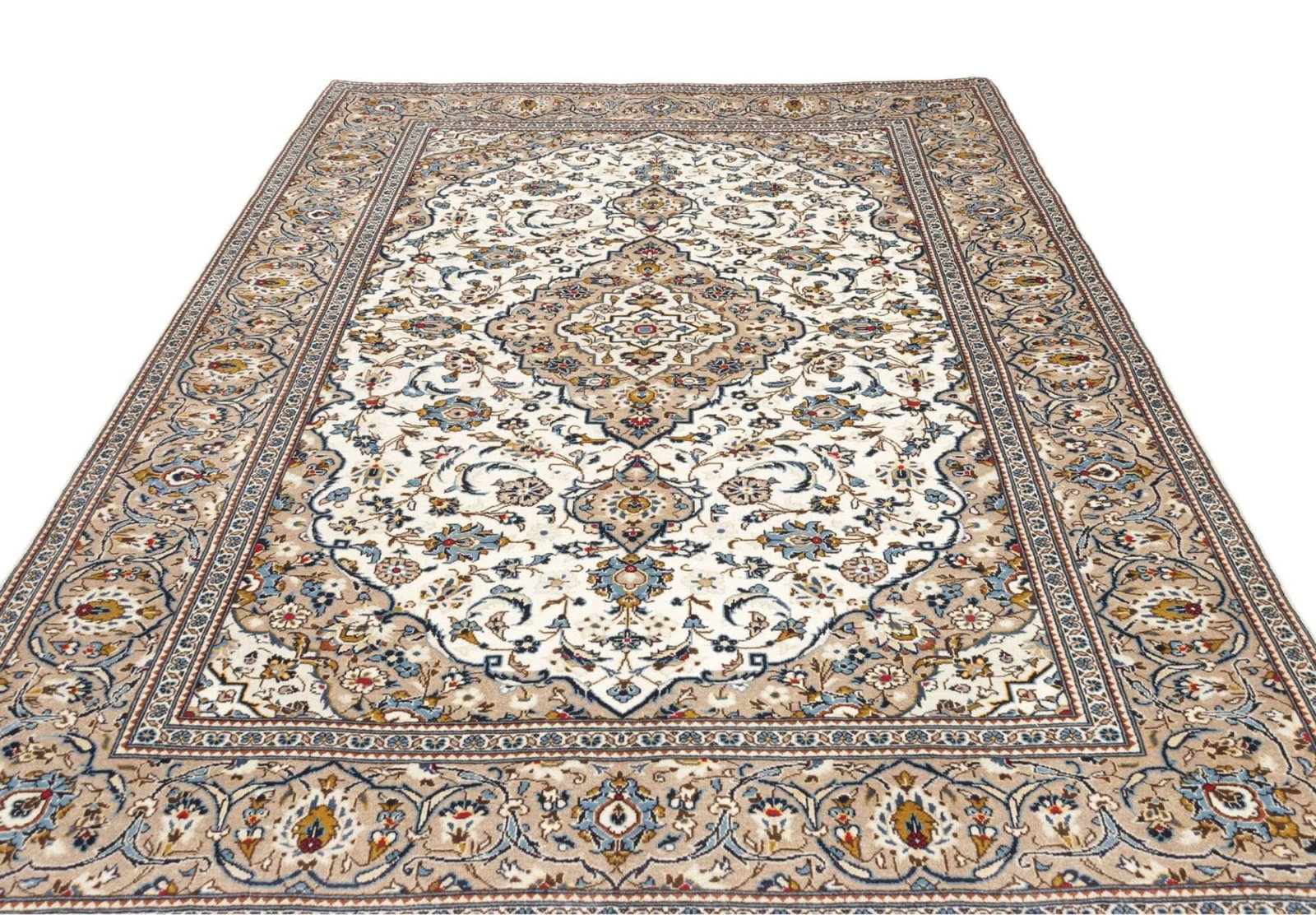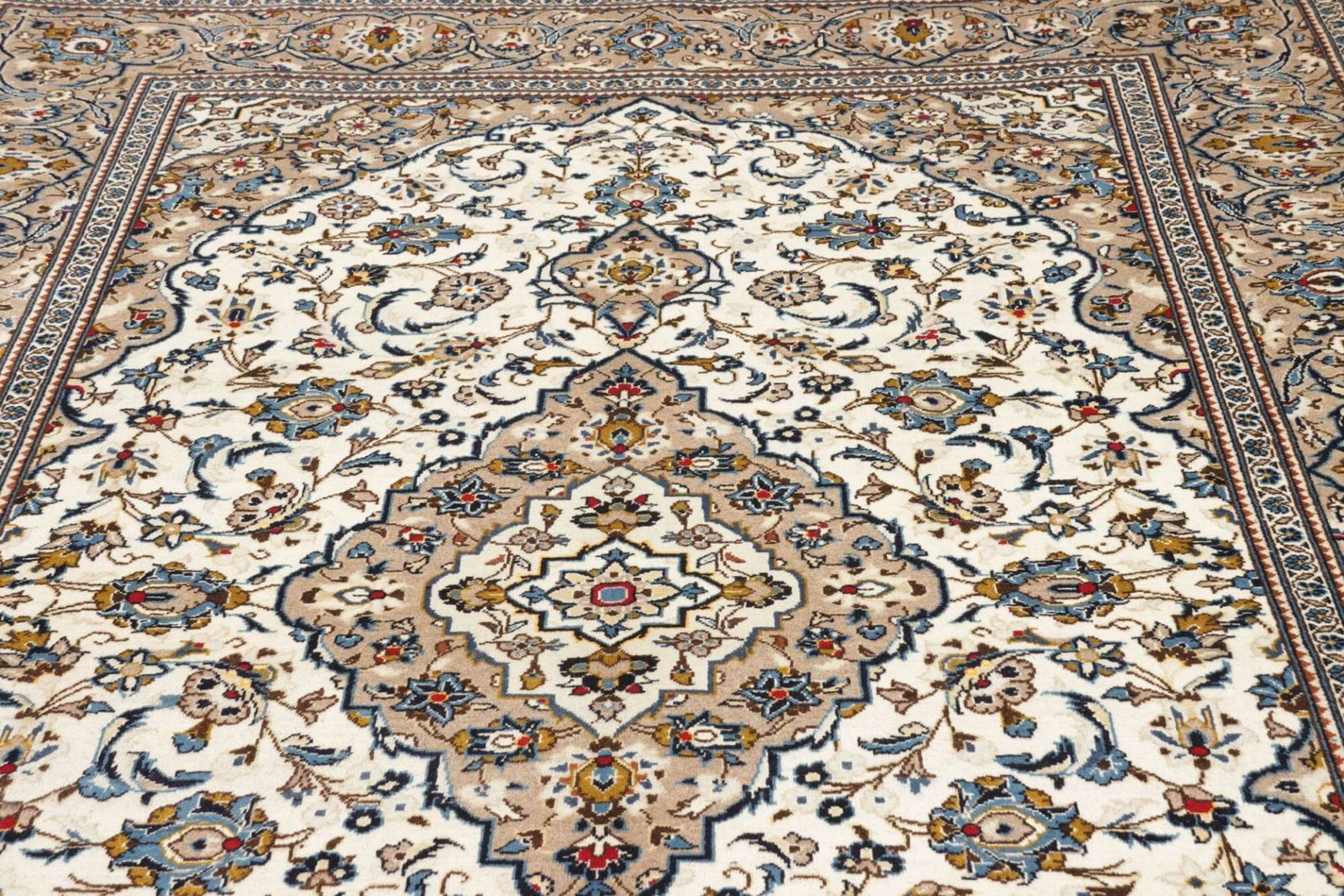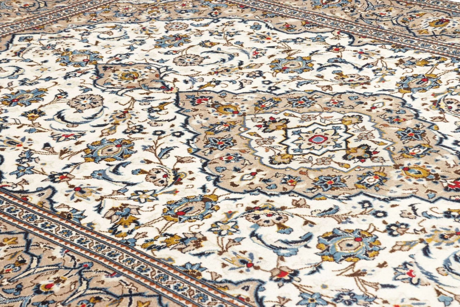 Der Kashan Teppich ist ein Meisterwerk traditioneller Handwerkskunst aus dem Iran. Er besticht durch seine hochwertige Schurwolle, die nicht nur für ihre Langlebigkeit bekannt ist, sondern auch für ihre sanfte Haptik und exzellenten Schmutzabweisenden Eigenschaften. Jeder Teppich wird handgeknüpft, wodurch ein einzigartiges Stück entsteht, das in vielen Haushalten über Generationen hinweg geschätzt wird.