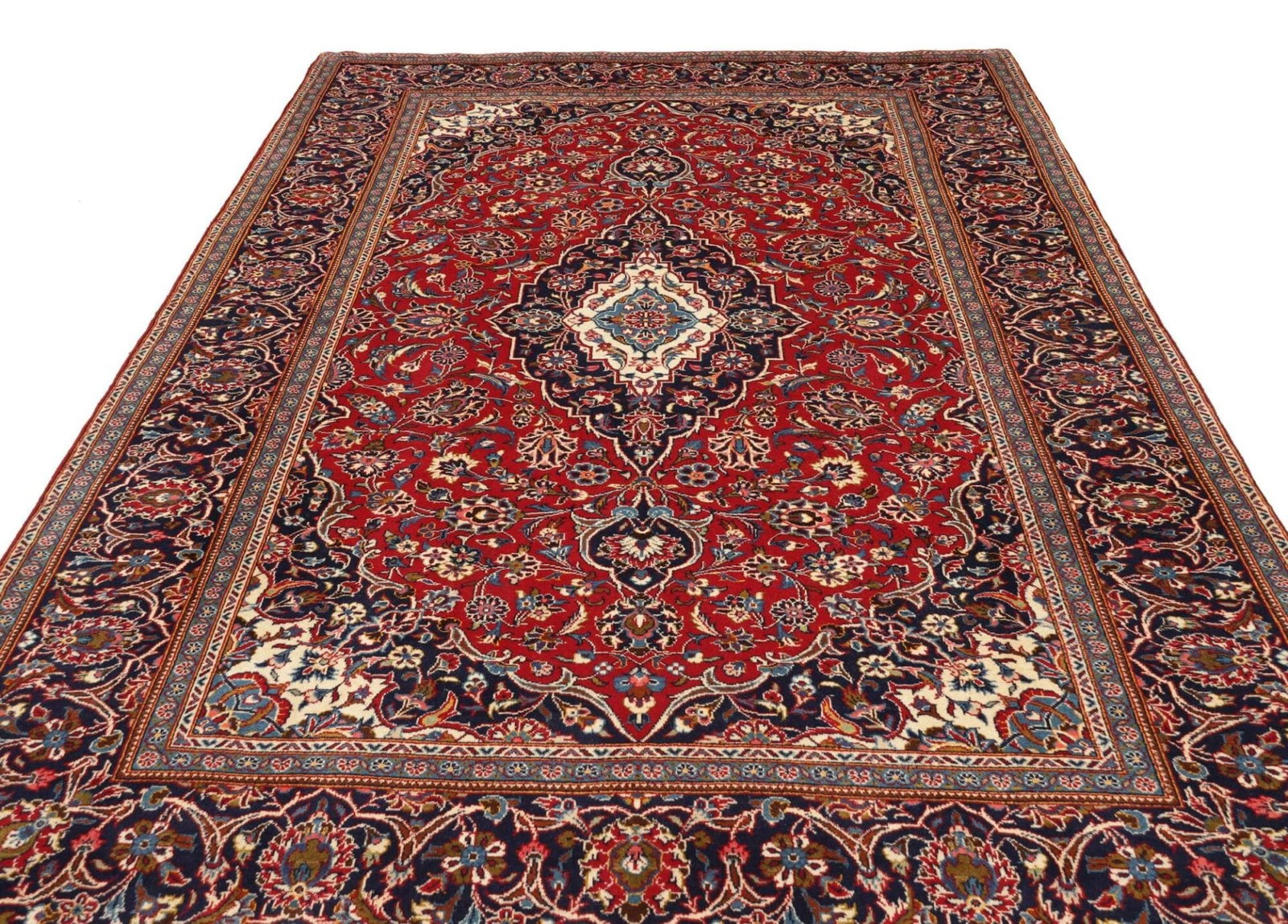 Der Kashan Teppich bietet neben seinem ästhetischen Wert auch praktische Vorteile. Seine strapazierfähige Beschaffenheit macht ihn ideal für stark frequentierte Bereiche, während die Schurwolle für ein angenehmes Raumklima sorgt. Dank seiner Robustheit und der Pflegeleichtigkeit eignet er sich sowohl für private Haushalte als auch für öffentliche Einrichtungen. Darüber hinaus wird jeder handgeknüpfte Teppich zum Unikat, da die Handarbeit und die verwendeten Materialien sicherstellen, dass kein Teppich dem anderen gleicht. Dies macht den Kashan Teppich nicht nur zu einem funktionalen Element, sondern auch zu einer Aussage über Stil und Geschmack.