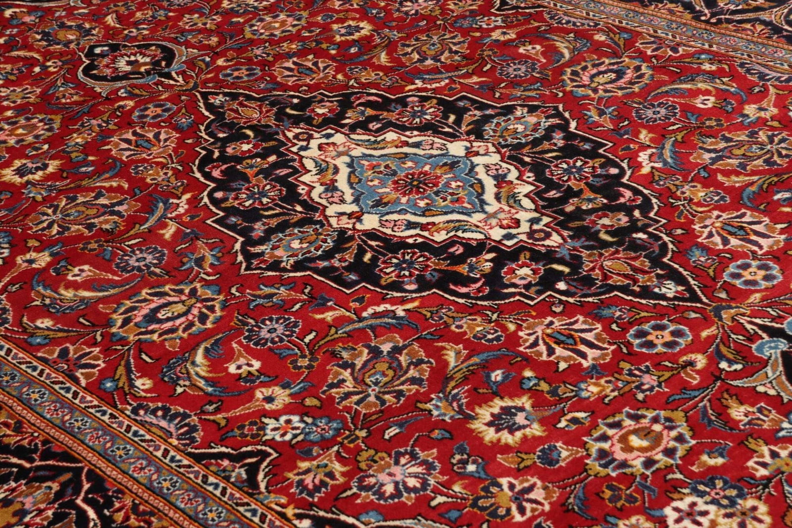 Der Kashan Teppich ist ein wahrhaft handwerkliches Meisterwerk, das nicht nur durch seine Größe beeindruckt, sondern auch durch seine exquisiten Materialien und die präzise Handwerkskunst. Dieser handgeknüpfte Perserteppich aus hochwertiger Schurwolle vereint Komfort und Ästhetik auf beeindruckende Weise.