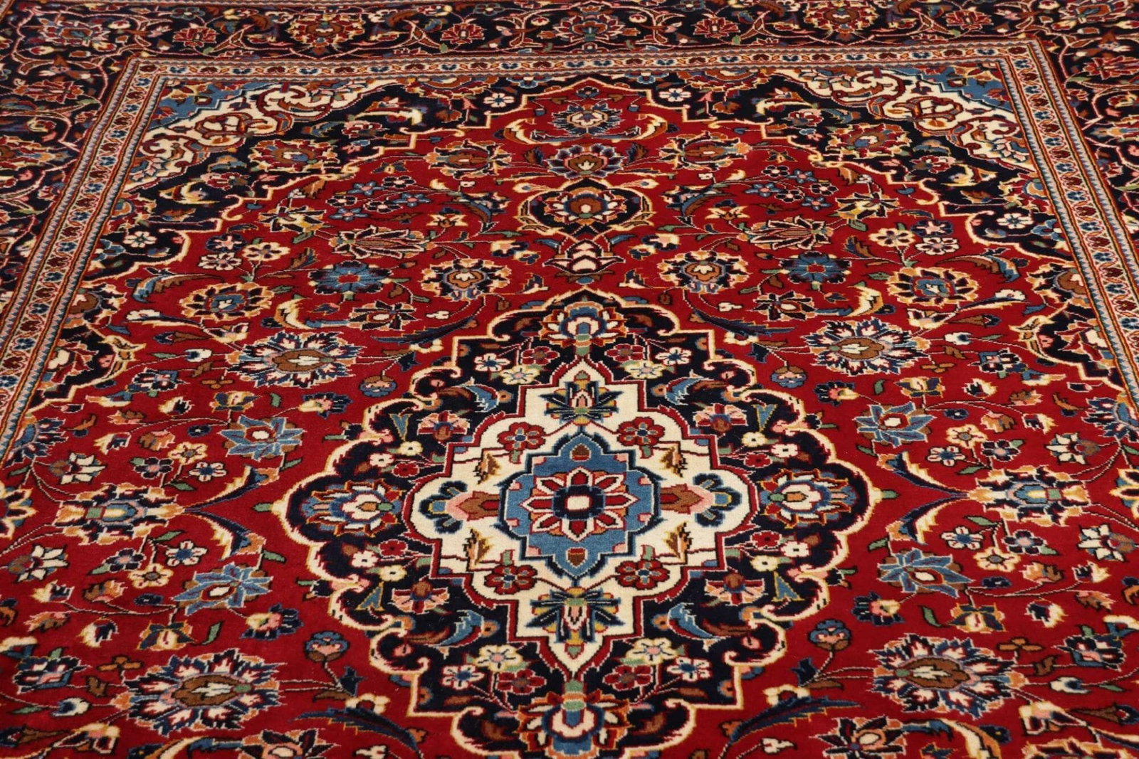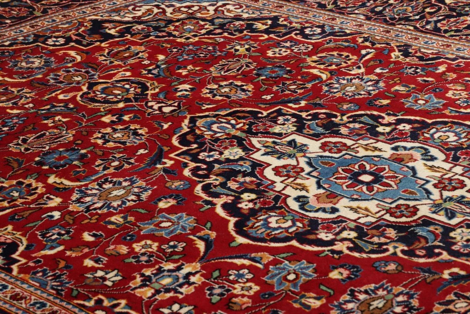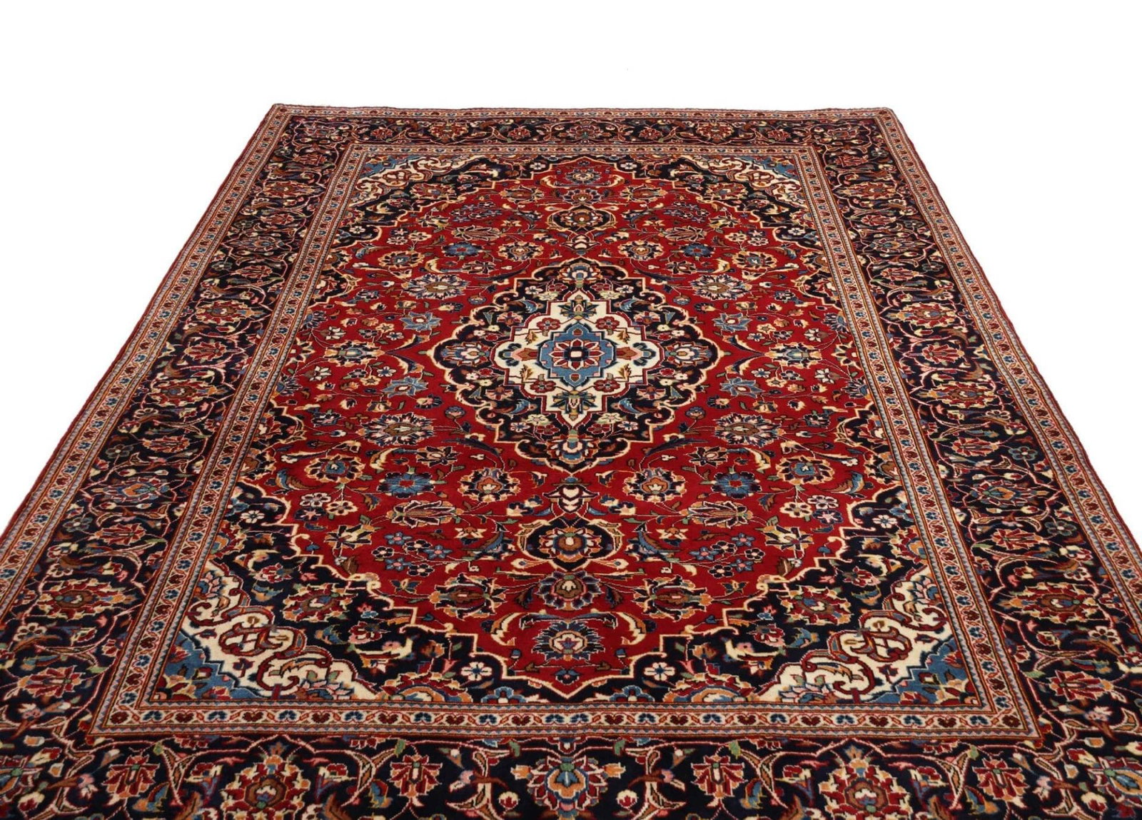 Kashan Teppiche werden in der Stadt Kashan im Iran hergestellt, einem Zentrum der traditionellen Teppichknüpferei. Hier wird seit Jahrhunderten in handwerklicher Kunstfertigkeit gearbeitet, um einzigartige und hochwertige Teppiche herzustellen.