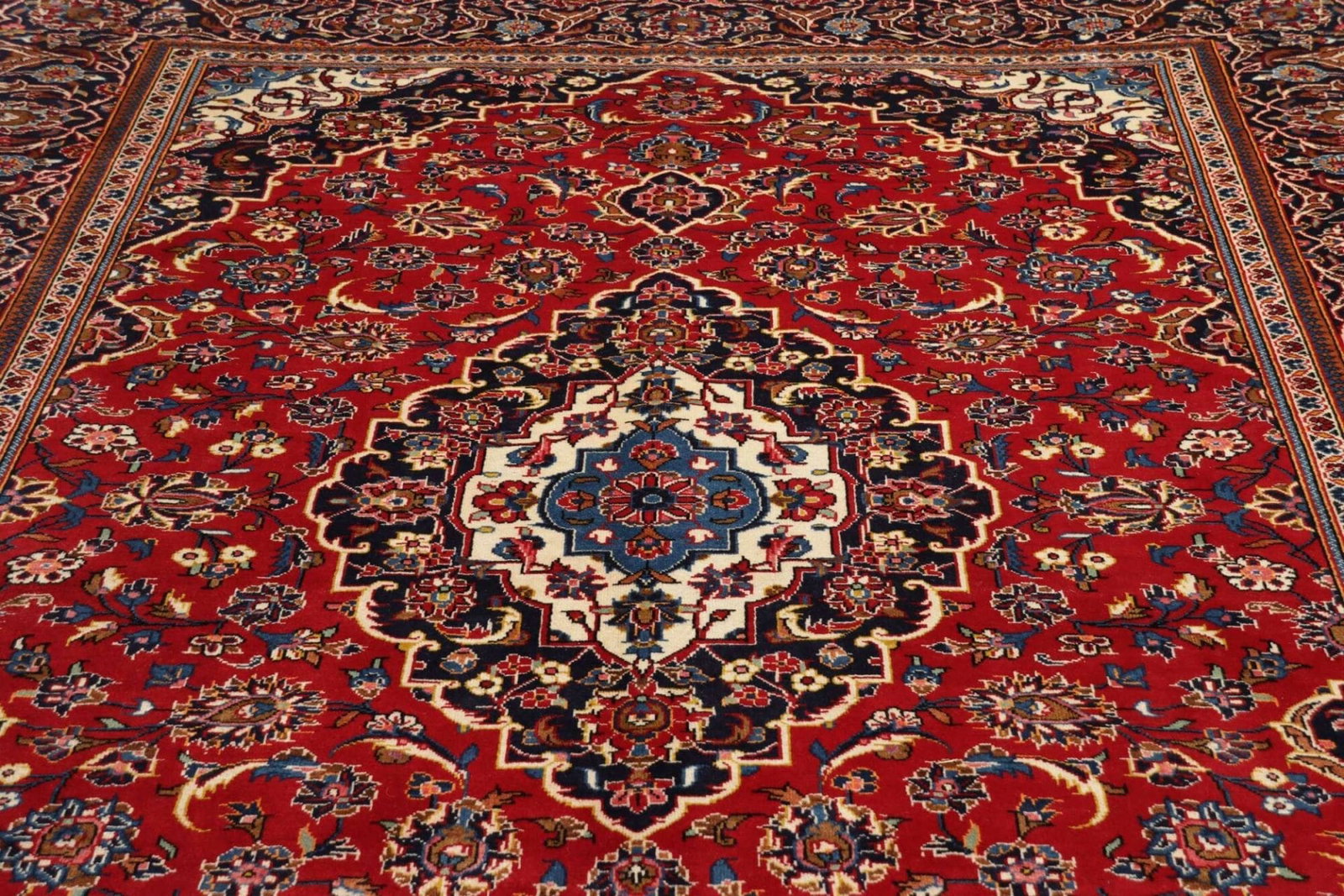 Kashan Teppich | Knotendichte: ca. 200.000 Knoten/m² | Material: 100% Schurwolle (Flor) und 100% Baumwolle (Kette) | Größe: 245 x 345 cm | Handgeknüpfte Qualität | Herkunft: Iran | Zustand: Sehr gut erhalten