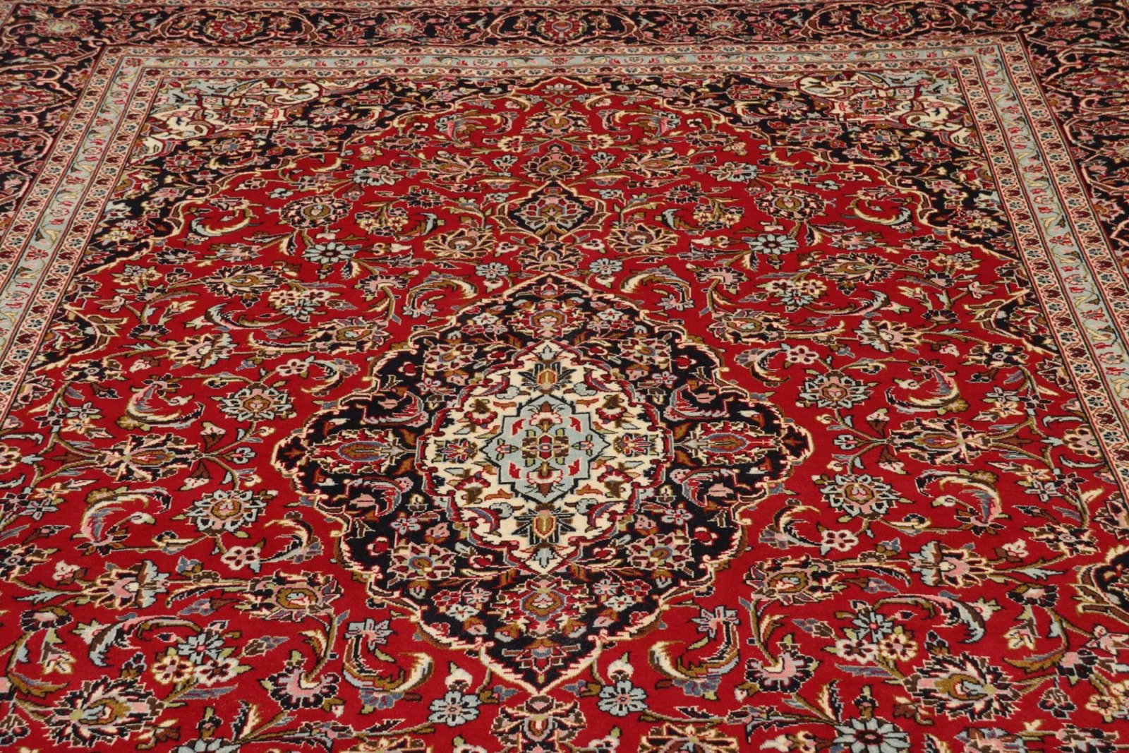 Handgeknüpfter Kashan Teppich | Knotendichte: ca. 200.000 Knoten/m² | Material: 100% Schurwolle (Flor), 100% Baumwolle (Kette) | Größe: 246 x 355 cm | Herkunft: Iran | Zustand: Ausgezeichnet | Strapazierfähig und pflegeleicht | Exotische Muster mit floralen und geometrischen Designs