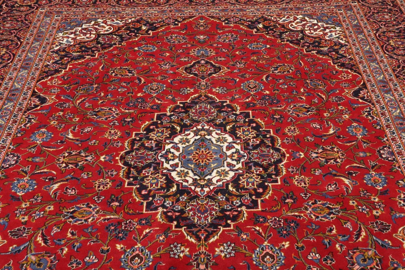 Kashan Teppich 248 x 358cm, Schurwolle, florale Muster, handgeknüpft