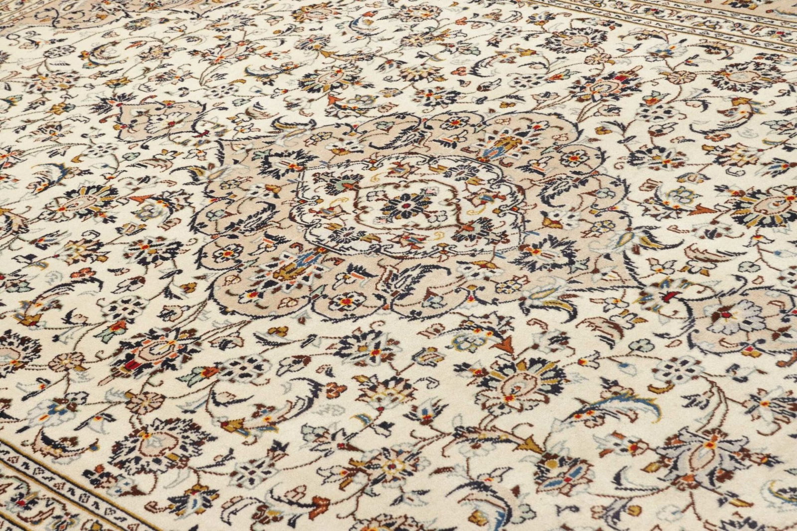 Ein weiterer herausragender Aspekt des Kashan Teppichs ist seine zeitlose Anziehungskraft. Die Kombination aus traditioneller Knotentechnik und modernen Designansätzen ermöglicht es, den Teppich sowohl in klassischen als auch in zeitgenössischen Wohnräumen zu integrieren. Zudem sind handgeknüpfte Teppiche wie dieser wegen ihrer Langlebigkeit und Pflegeleichtigkeit sehr geschätzt. Mit der richtigen Pflege kann ein Kashan Teppich Generationen überdauern und damit nicht nur Funktionalität, sondern auch ästhetischen Wert bieten.