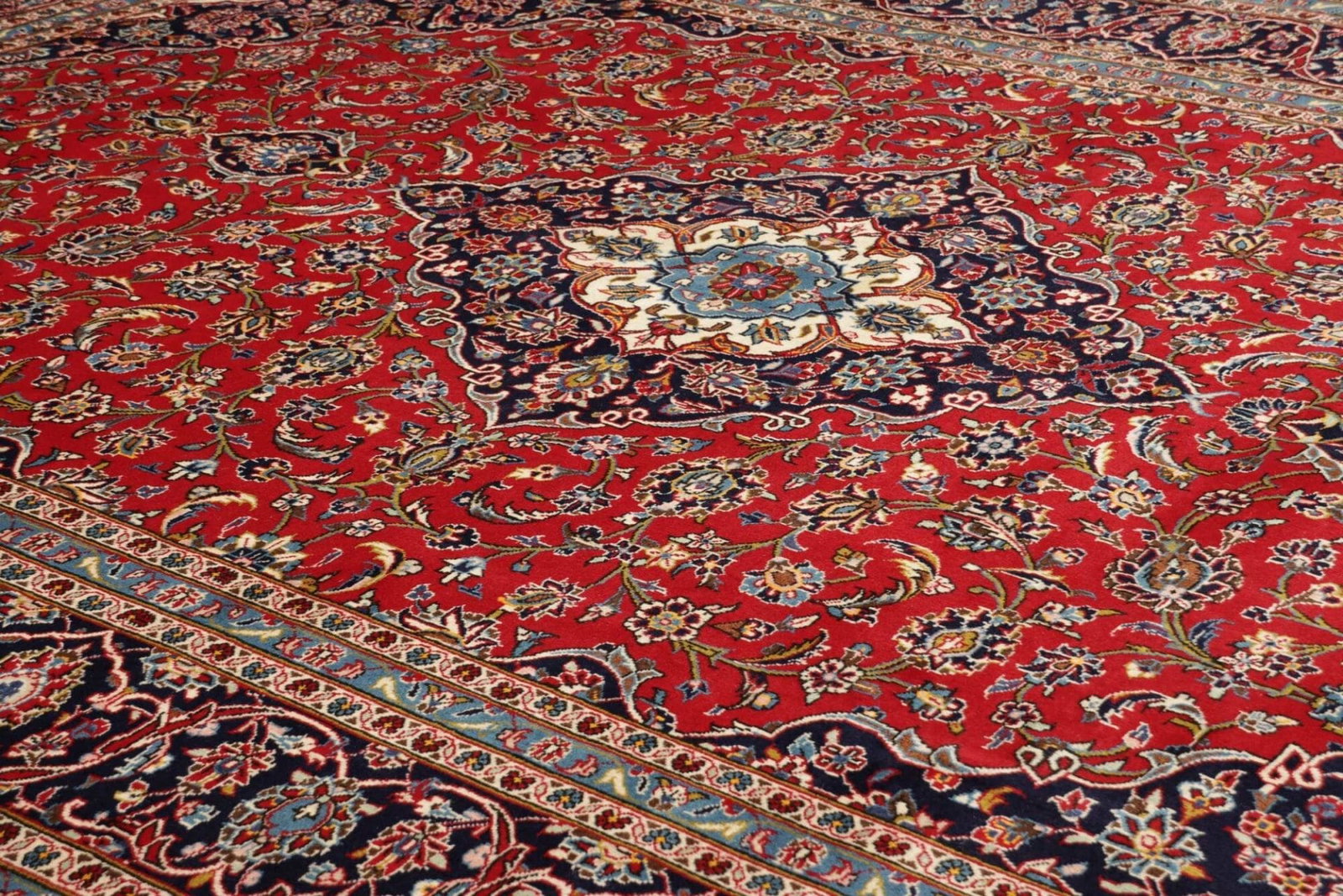 2168$Ursprünglicher Preis war: 2168$1837$Aktueller Preis ist: 1837$Kashan Teppich | Größe: 251 x 347 cm | Knotendichte: ca. 200.000 Knoten/m² | Flor: 100% Schurwolle | Kette: 100% Baumwolle | Herkunft: Iran | Zustand: Handgeknüpft, sehr gut erhalten