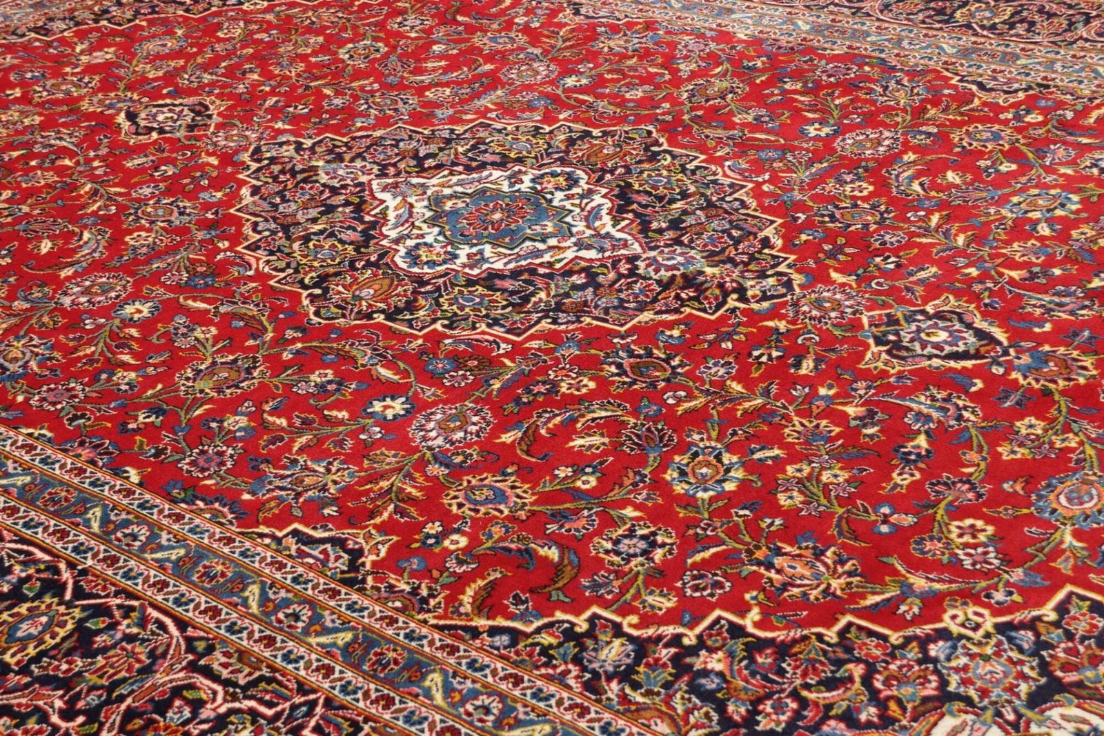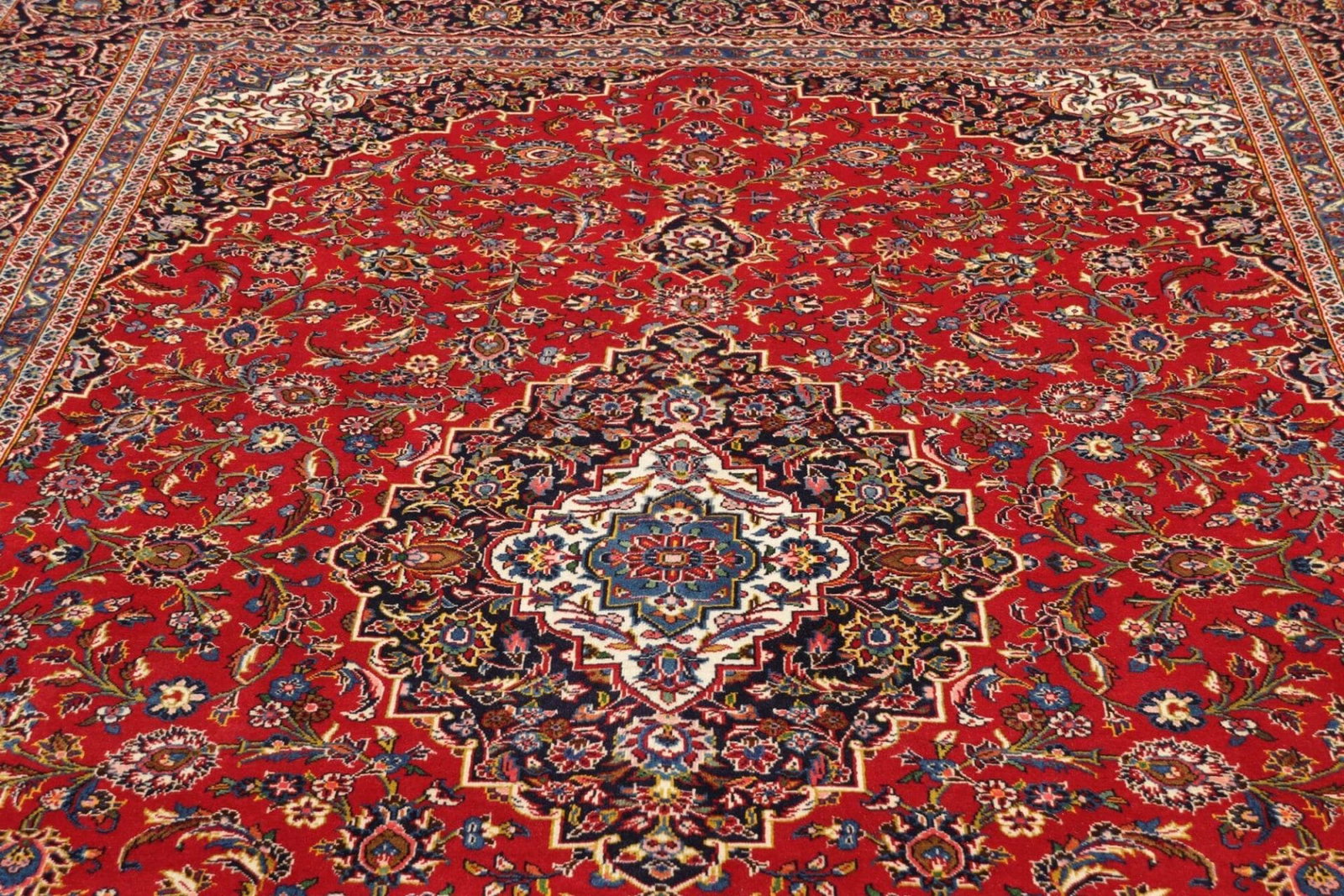 Kashan Teppich | Knotendichte: ca. 200.000 Knoten/m² | Material: 100% Schurwolle | Größe: 251 x 350 cm | Herkunft: Iran | Zustand: Ausgezeichnet | Verarbeitung: Handgeknüpft | Kette: 100% Baumwolle
