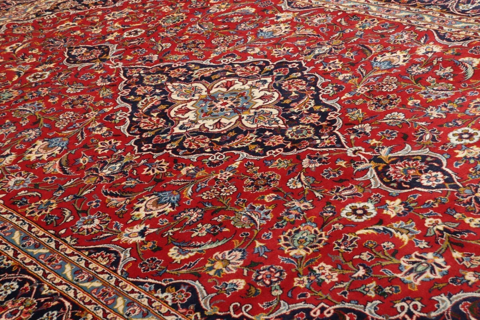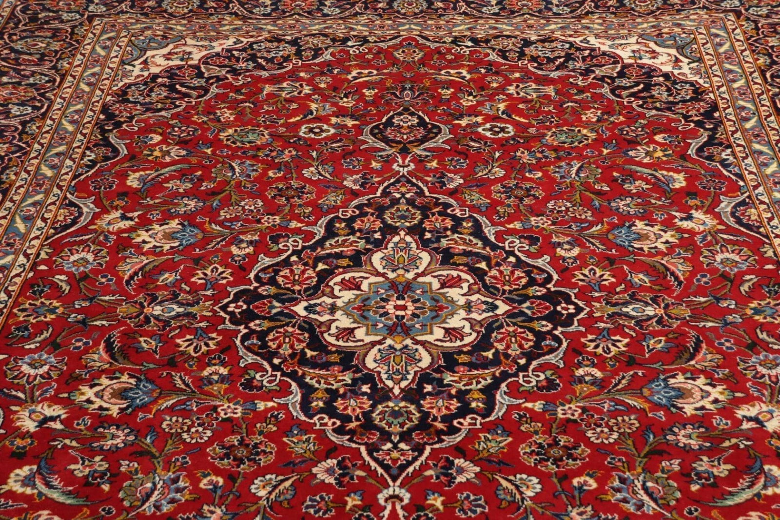 Kashan ist eine alte Stadt im zentralen Iran und bekannt für ihre geschickten Teppichweber, die Meisterwerke schaffen, die oft als die besten Teppiche des Landes gelten. Die Teppichtradition in Kashan reicht mehrere Jahrhunderte zurück und ist geprägt von einem unübertroffenen handwerklichen Können. In der Region finden sich zahlreiche Variationen in Farbgebung und Design, die auf jahrhundertelange kulturelle Einflüsse zurückgehen. Kashan ist berühmt für seine floralen Muster und die Verwendung lebendiger Farben, die dem Teppich Leben einhauchen und ihn zu einem echten „Eyecatcher“ in jedem Raum machen.