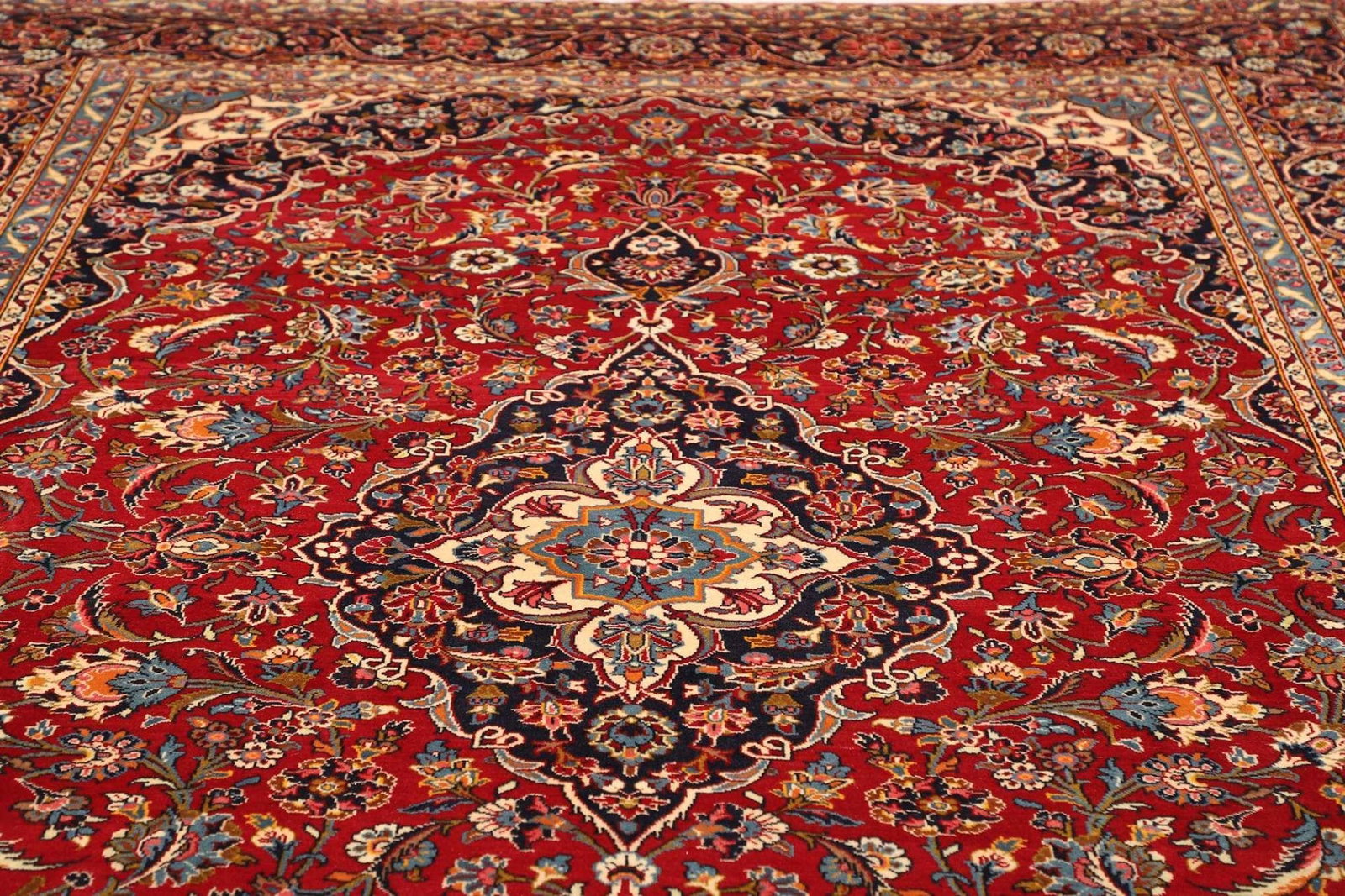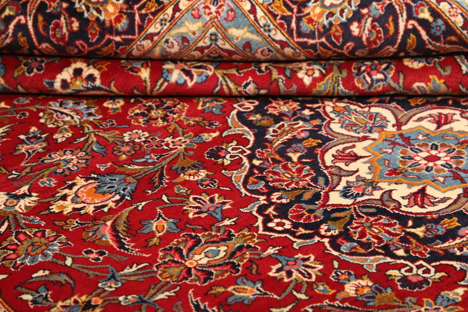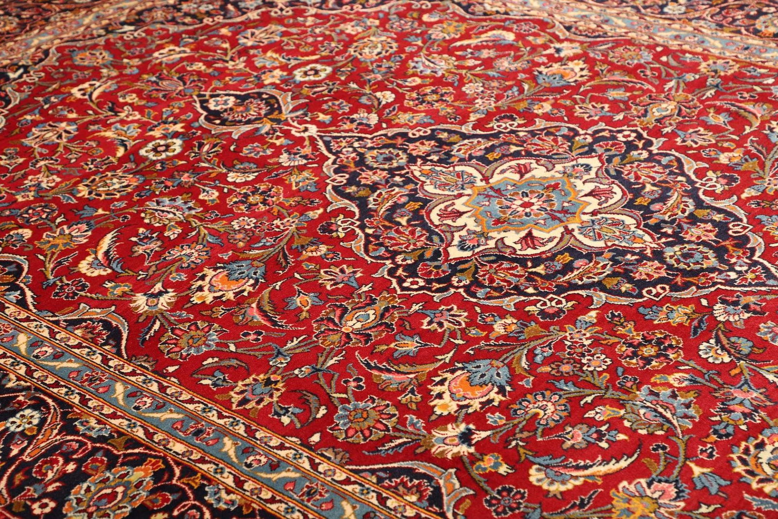 Kashan Teppich | Knotendichte: ca. 200.000 Knoten/m² | Material: 100% Schurwolle (Flor), 100% Baumwolle (Kette) | Größe: 253 x 375 cm | Handgeknüpft | Herkunft: Iran | Zustand: Sehr gut