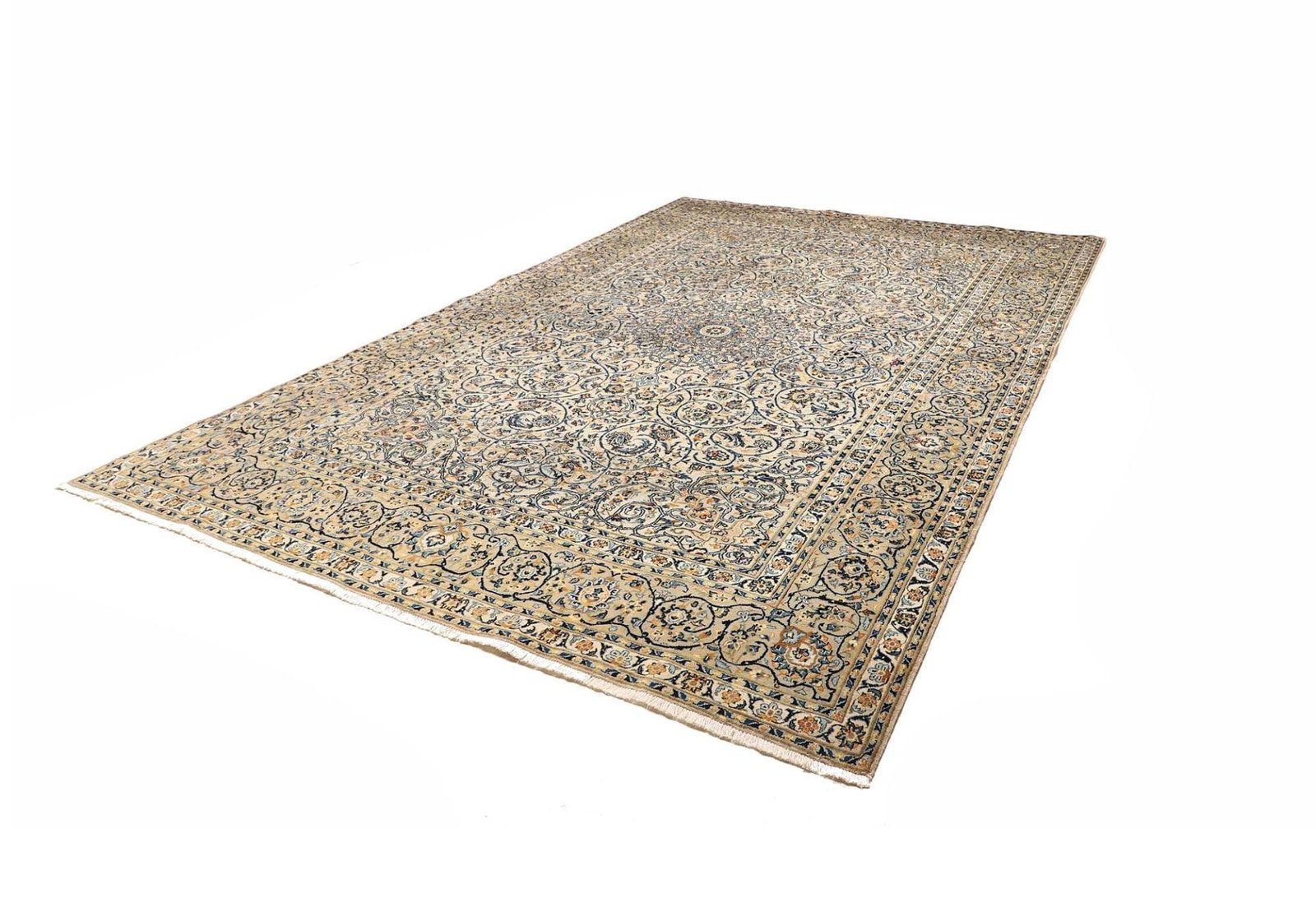 Kashan Teppich 253 x 392cm, handgeknüpft, Perserteppich, florale Muster