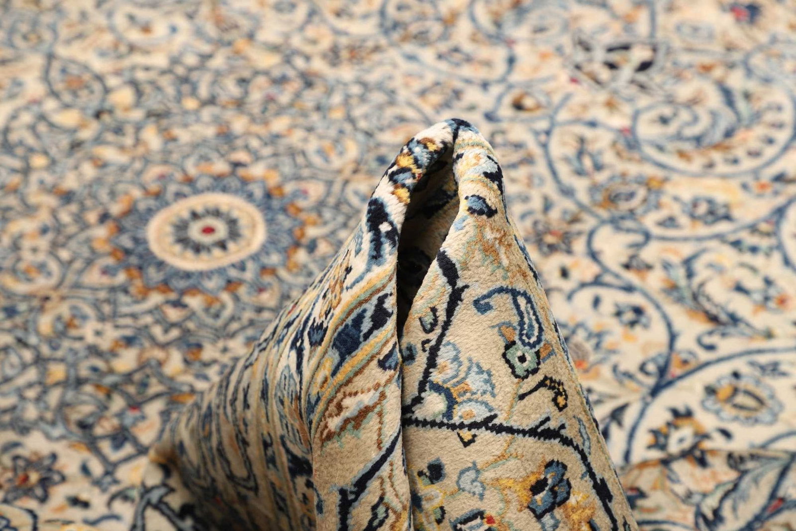 Der Kashan Teppich wird traditionell aus hochwertigen Naturfasern gefertigt, die die Grundlage für seine Haltbarkeit und den luxuriösen Glanz bilden. Die handgeknüpften Teppiche sind in der Regel aus Wolle oder Seide gefertigt, wobei die Wollvariante für ihre Robustheit geschätzt wird, während die Seide dem Teppich eine besondere Eleganz verleiht. Ein handgeknüpfter Teppich wie der Kashan überzeugt durch seine hohe Knotendichte, die zwischen 300.000 und 1.000.000 Knoten pro Quadratmeter liegen kann. Diese Dichte sorgt nicht nur für ein faszinierendes Muster, sondern garantiert zudem eine hervorragende Strapazierfähigkeit und Langlebigkeit.