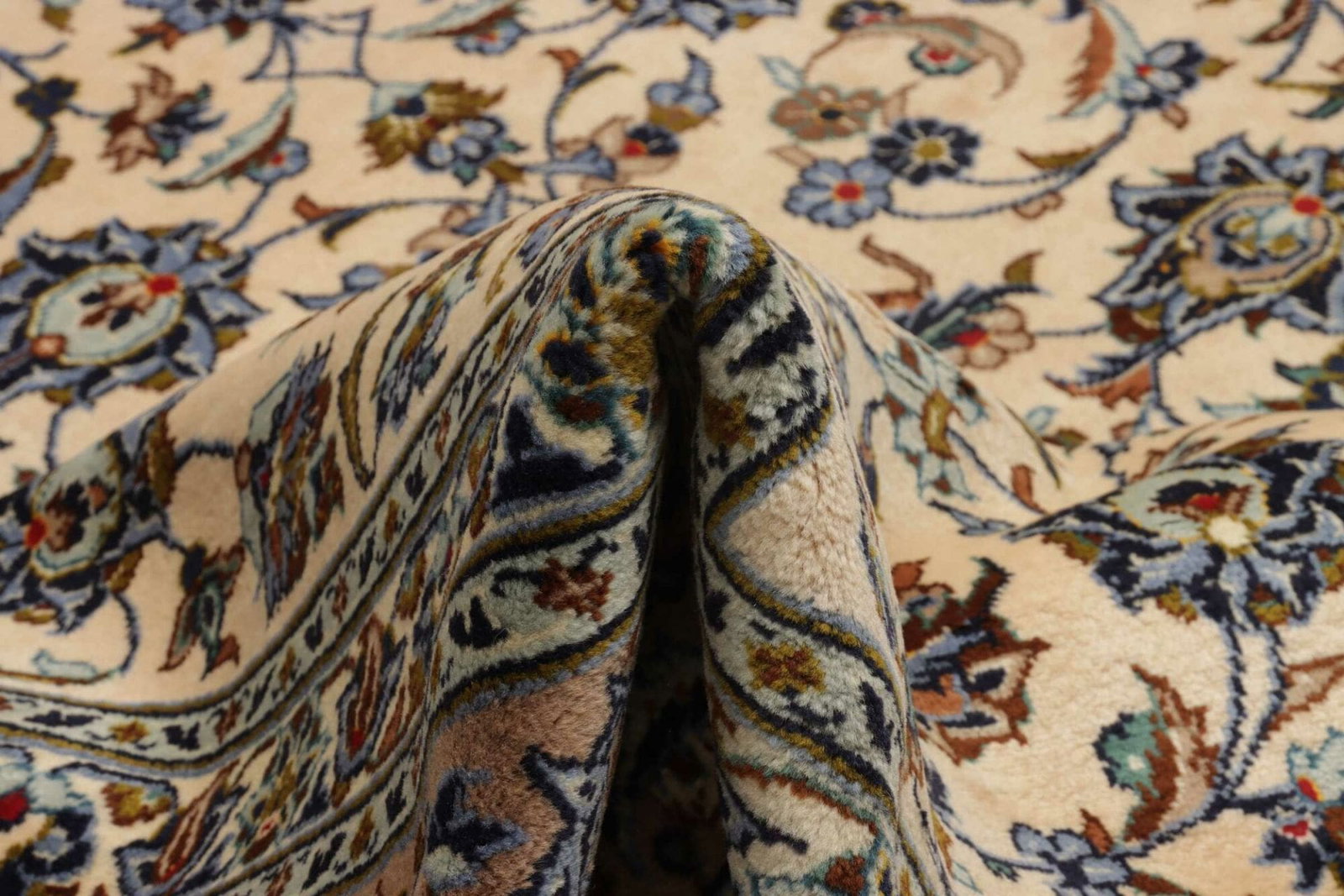Der Kashan Teppich besteht aus hochwertiger Schurwolle, die für ihre Langlebigkeit und ihre weichen, luxuriösen Eigenschaften bekannt ist. Schurwolle ist ein Naturprodukt, das nicht nur für seine Strapazierfähigkeit, sondern auch für seine hervorragenden isolierenden Eigenschaften geschätzt wird. Die Verwendung dieser edlen Wolle sorgt dafür, dass der Teppich auch nach Jahren der Nutzung seine Form und Farbbrillanz behält.