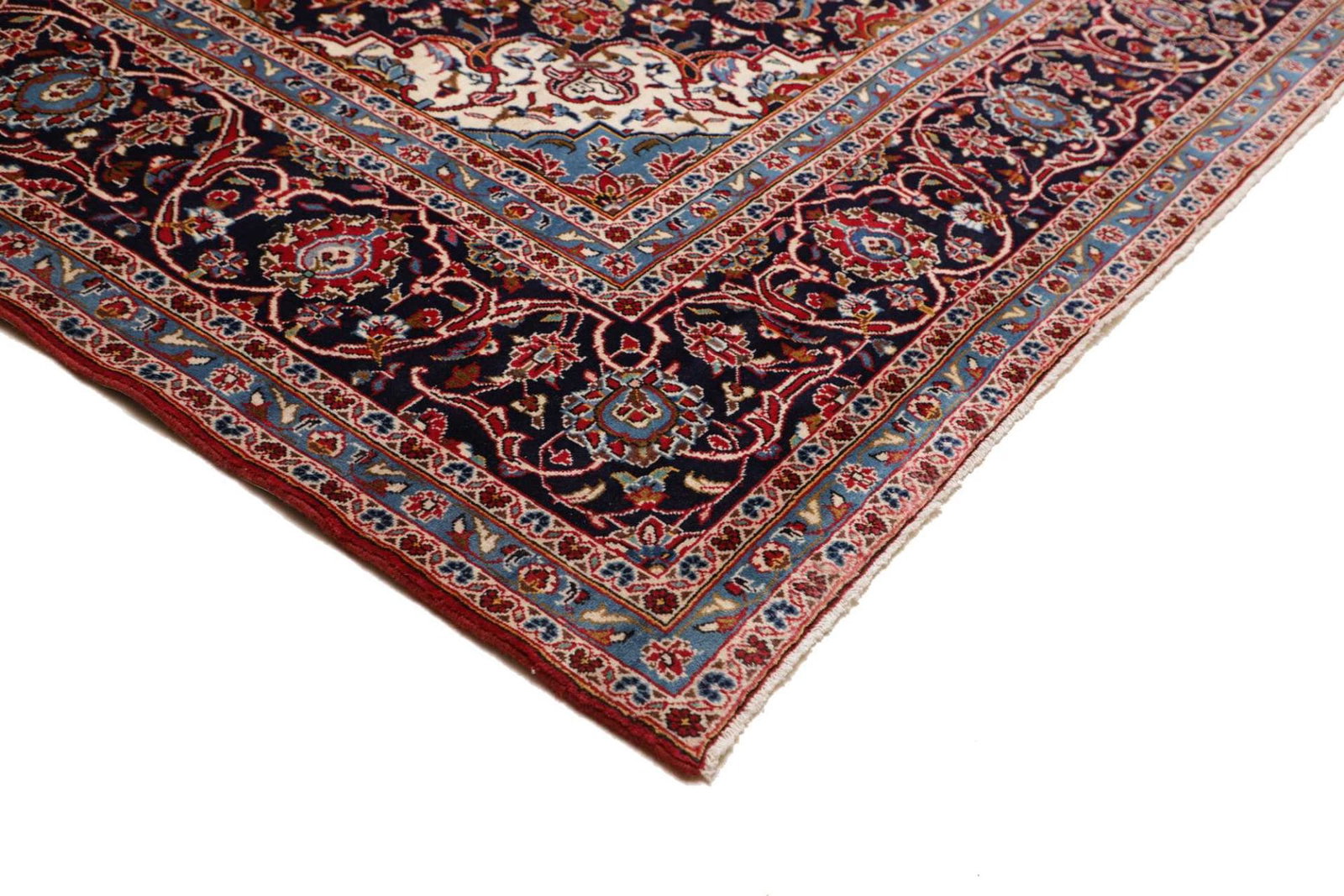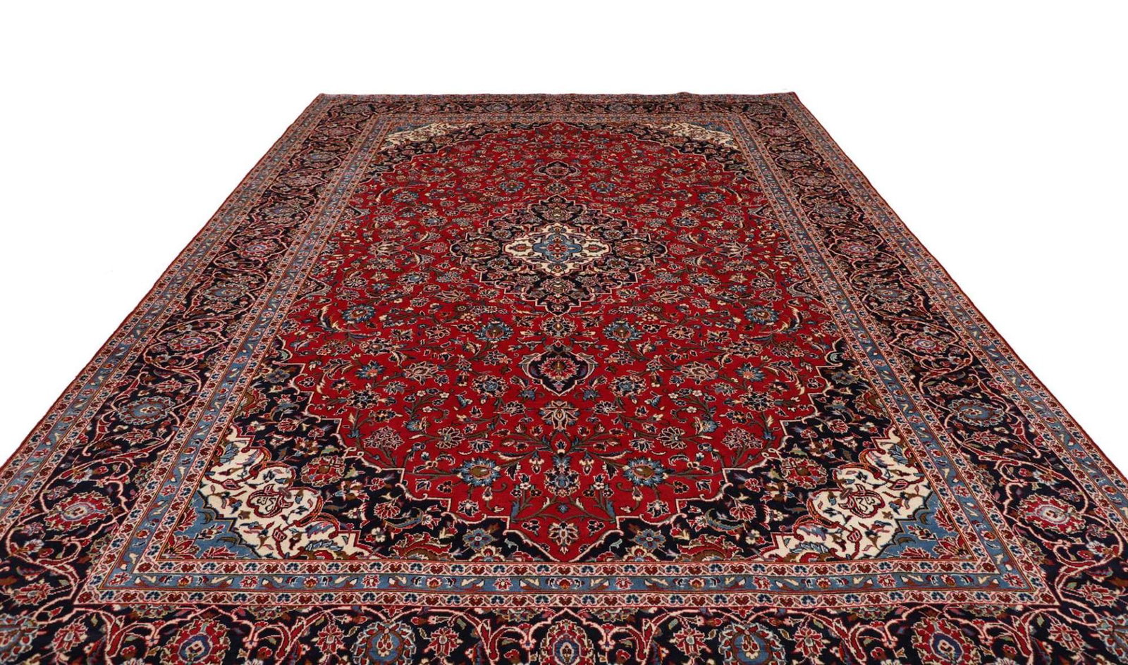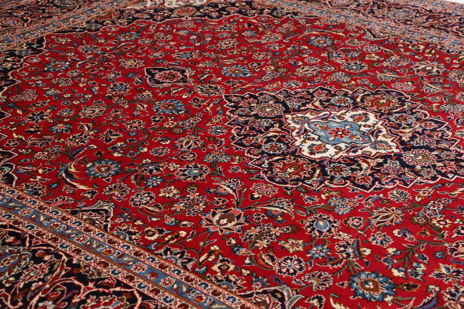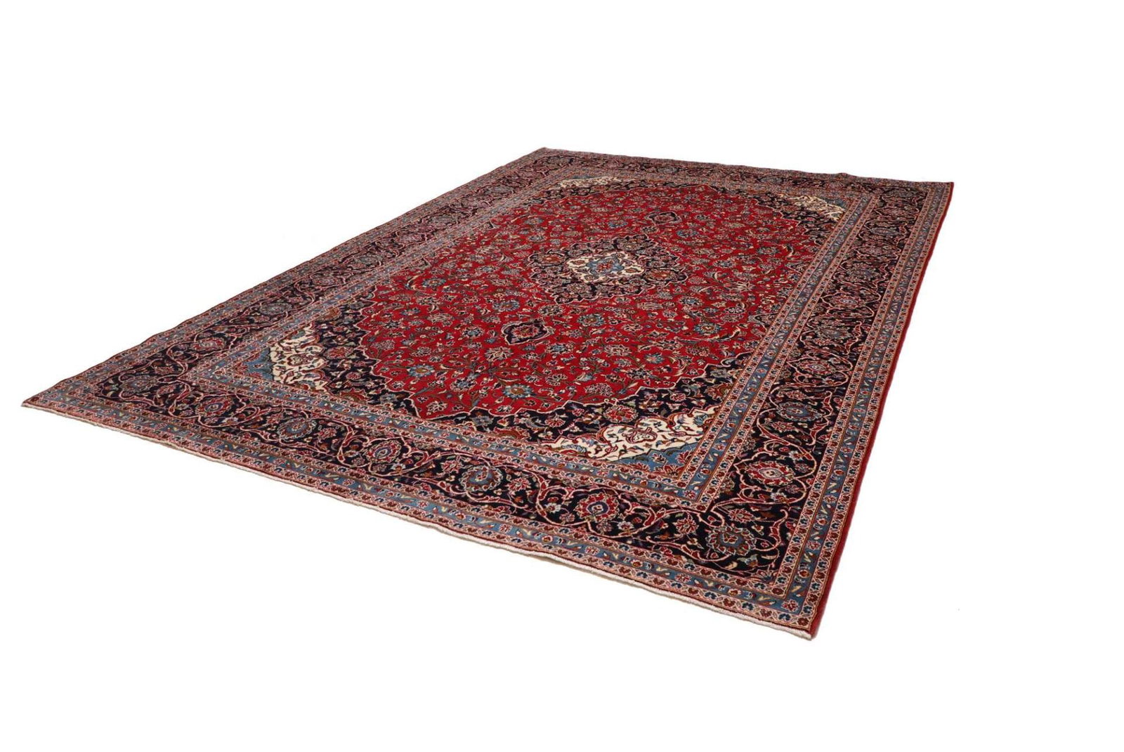 Kashan Teppich | Größe: 293 x 403 cm | Knotendichte: ca. 200.000 Knoten/m² | Flor: 100% Schurwolle | Kette: 100% Baumwolle | Verarbeitung: Handgeknüpft | Herkunft: Iran | Zustand: Sehr gut