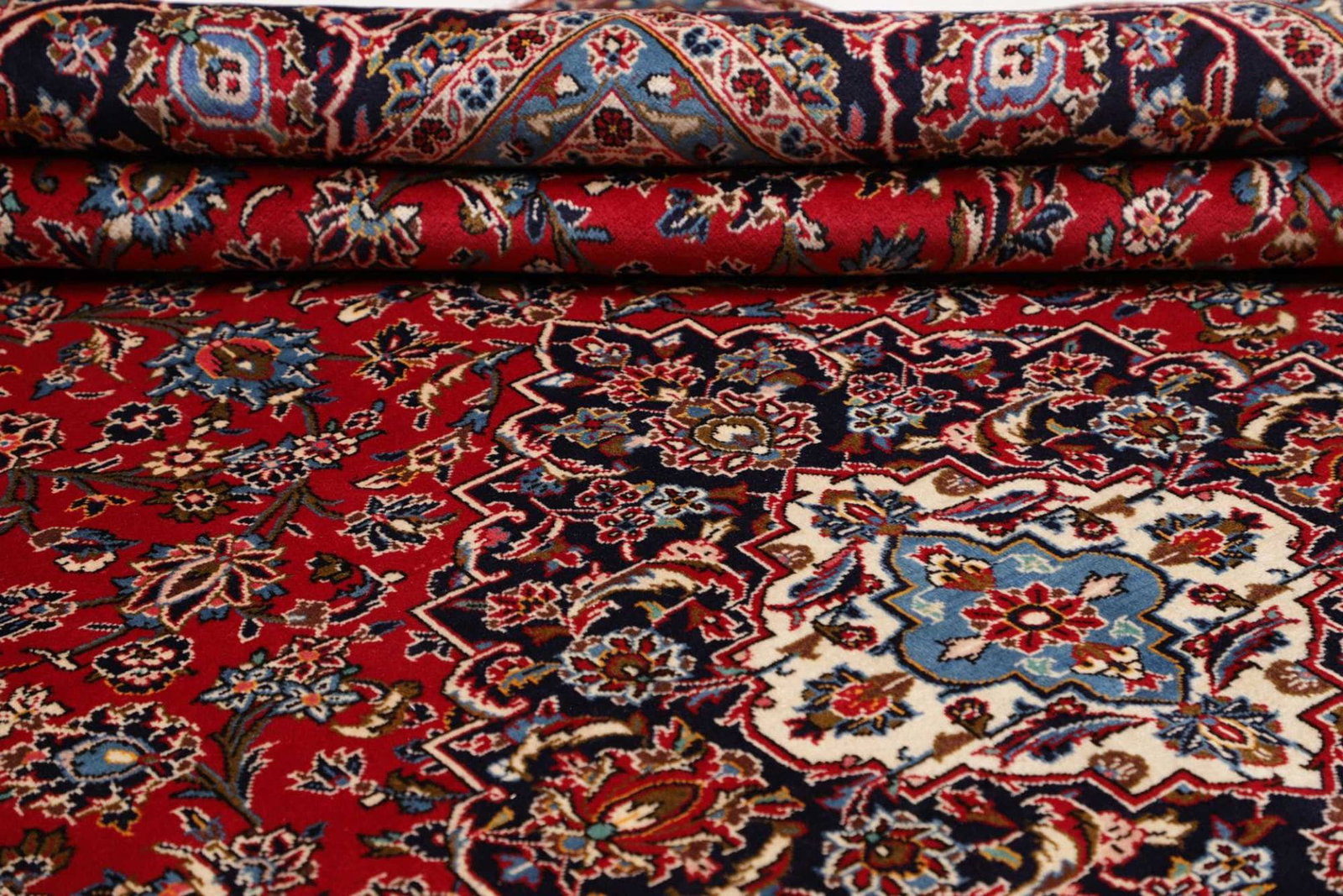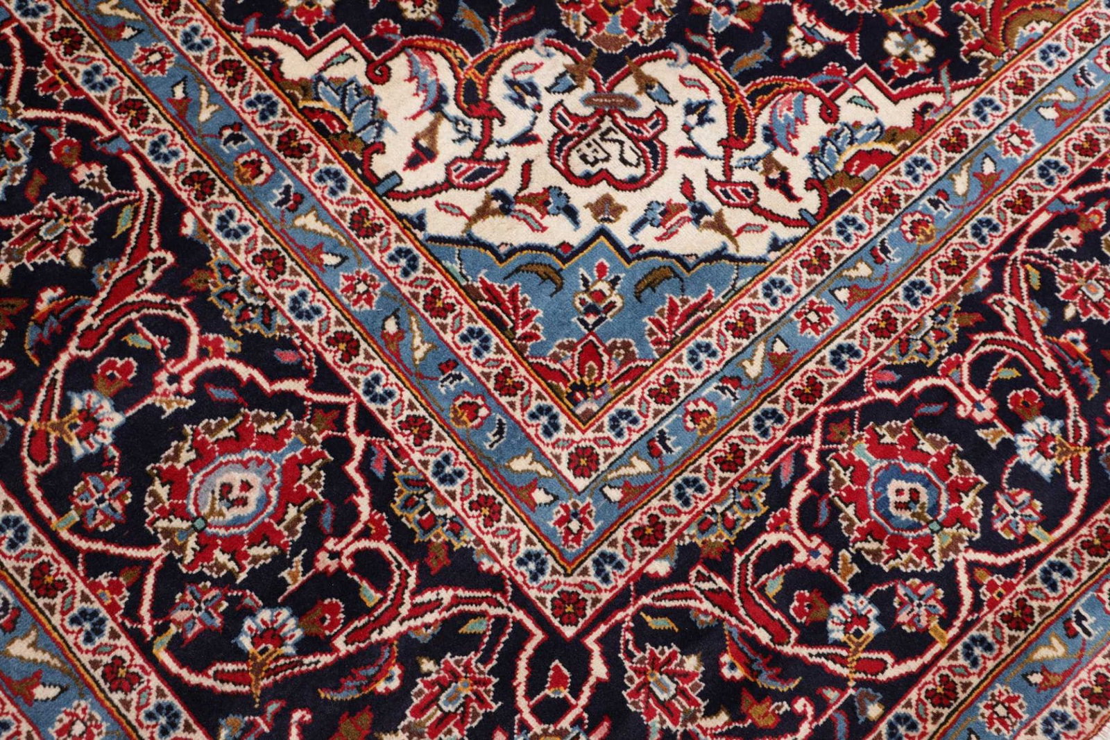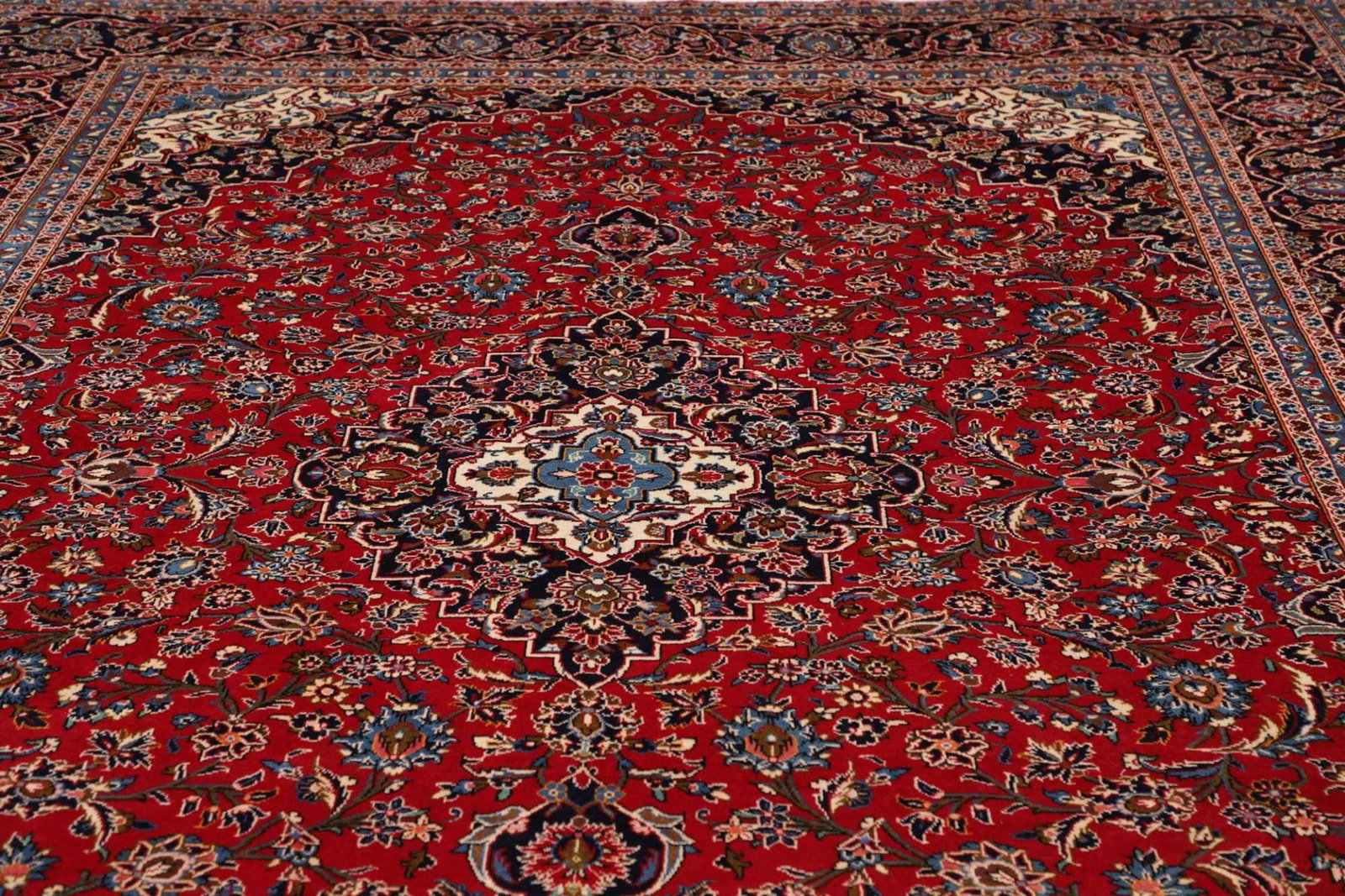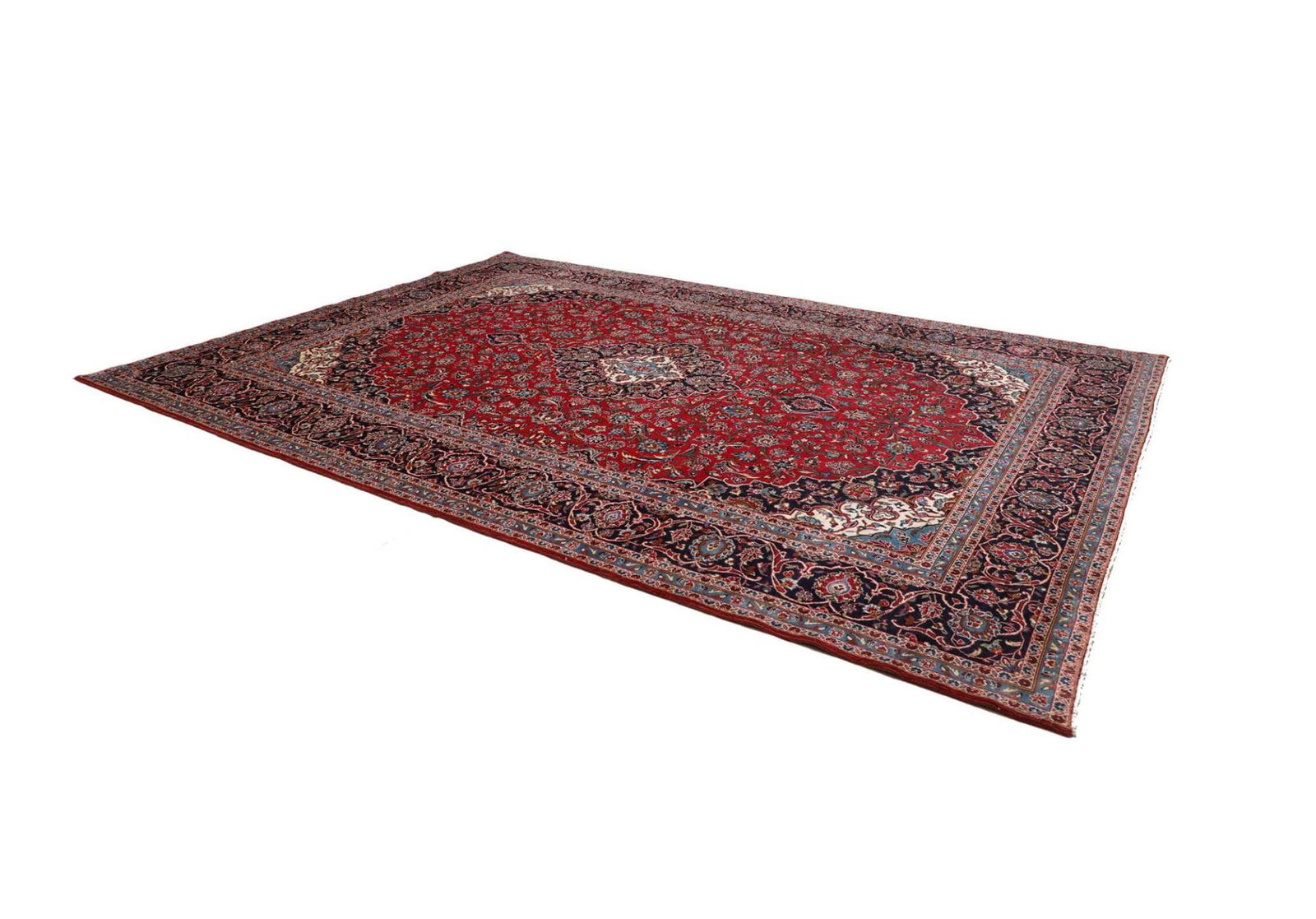 Kashan Teppich | Größe: 293 x 403 cm | Knotendichte: ca. 200.000 Knoten/m² | Flor: 100% Schurwolle | Kette: 100% Baumwolle | Verarbeitung: Handgeknüpft | Herkunft: Iran | Zustand: Sehr gut