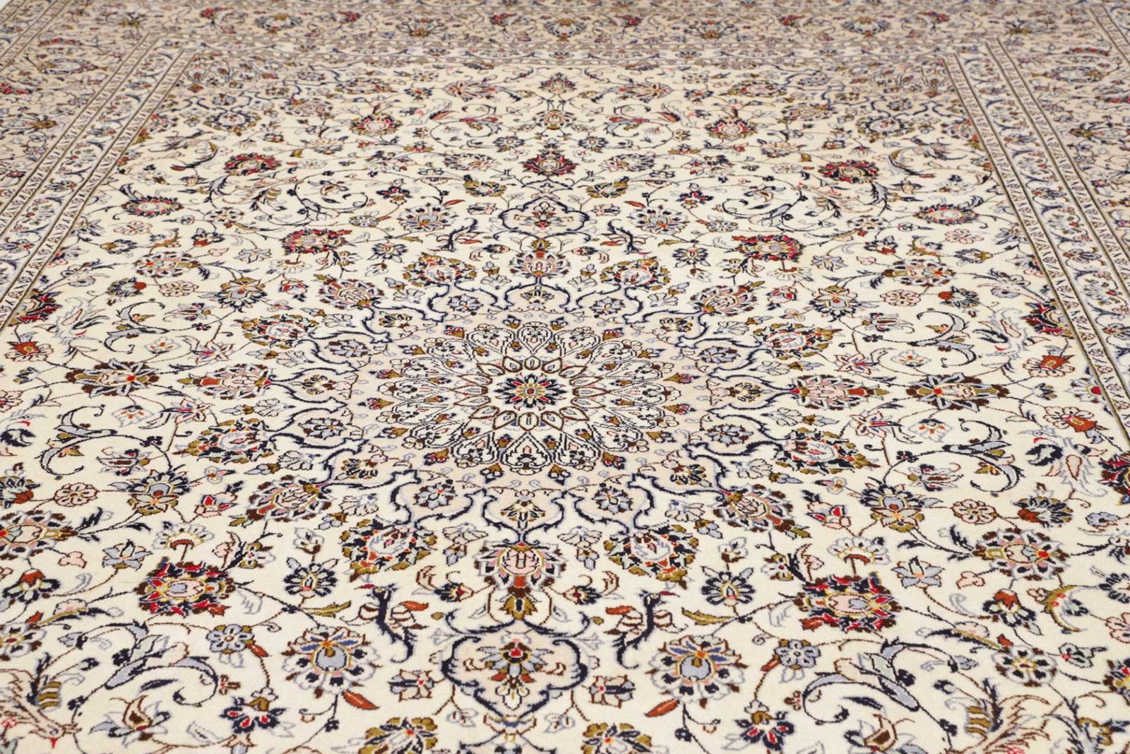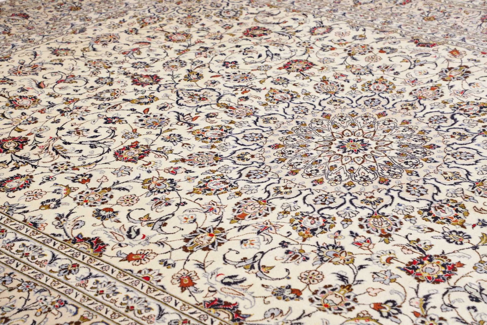 Kashan Teppich | Größe: 293 x 403 cm | Knotendichte: ca. 200.000 Knoten/m² | Flor: 100% Schurwolle | Kette: 100% Baumwolle | Herkunft: Iran | Verarbeitung: Handgeknüpft | Zustand: Ausgezeichnet