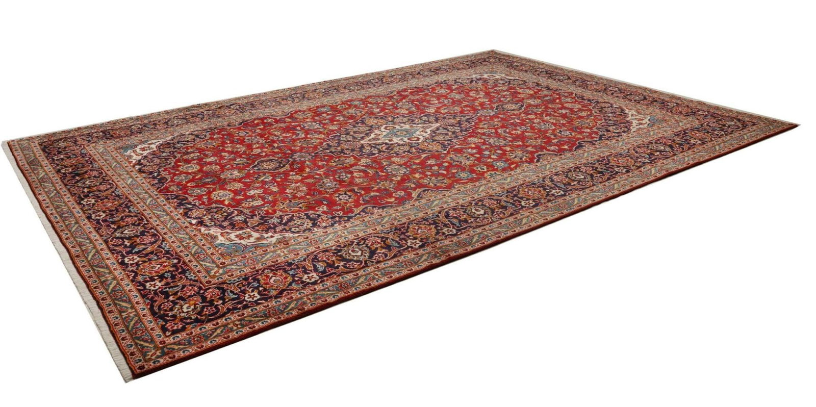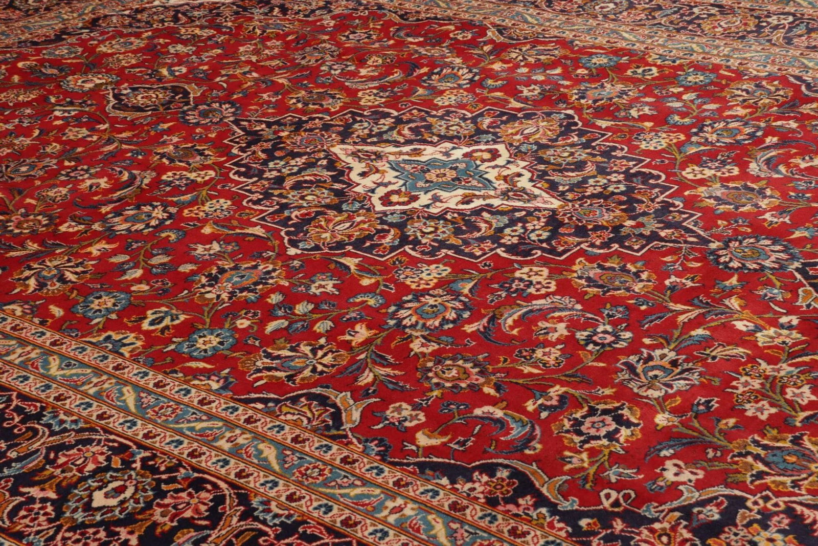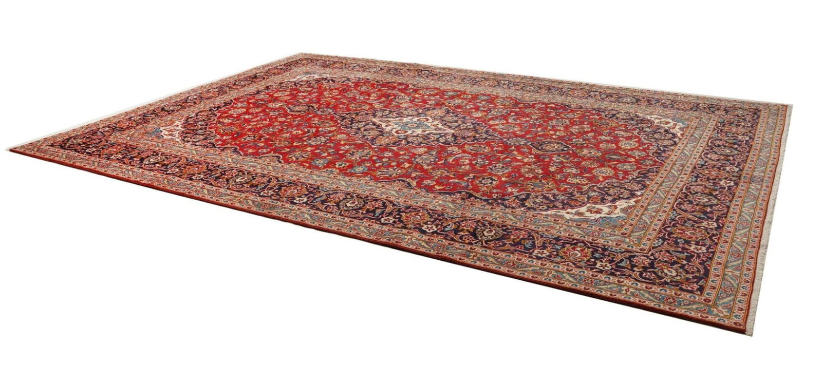 Kashan Teppich | Knotendichte: ca. 200.000 Knoten/m² | Material: 100% Schurwolle (Flor), 100% Baumwolle (Kette) | Größe: 293 x 413 cm | Handgeknüpfte Qualität | Herkunft: Iran | Zustand: Sehr gut erhalten | Exotisches, florales Muster