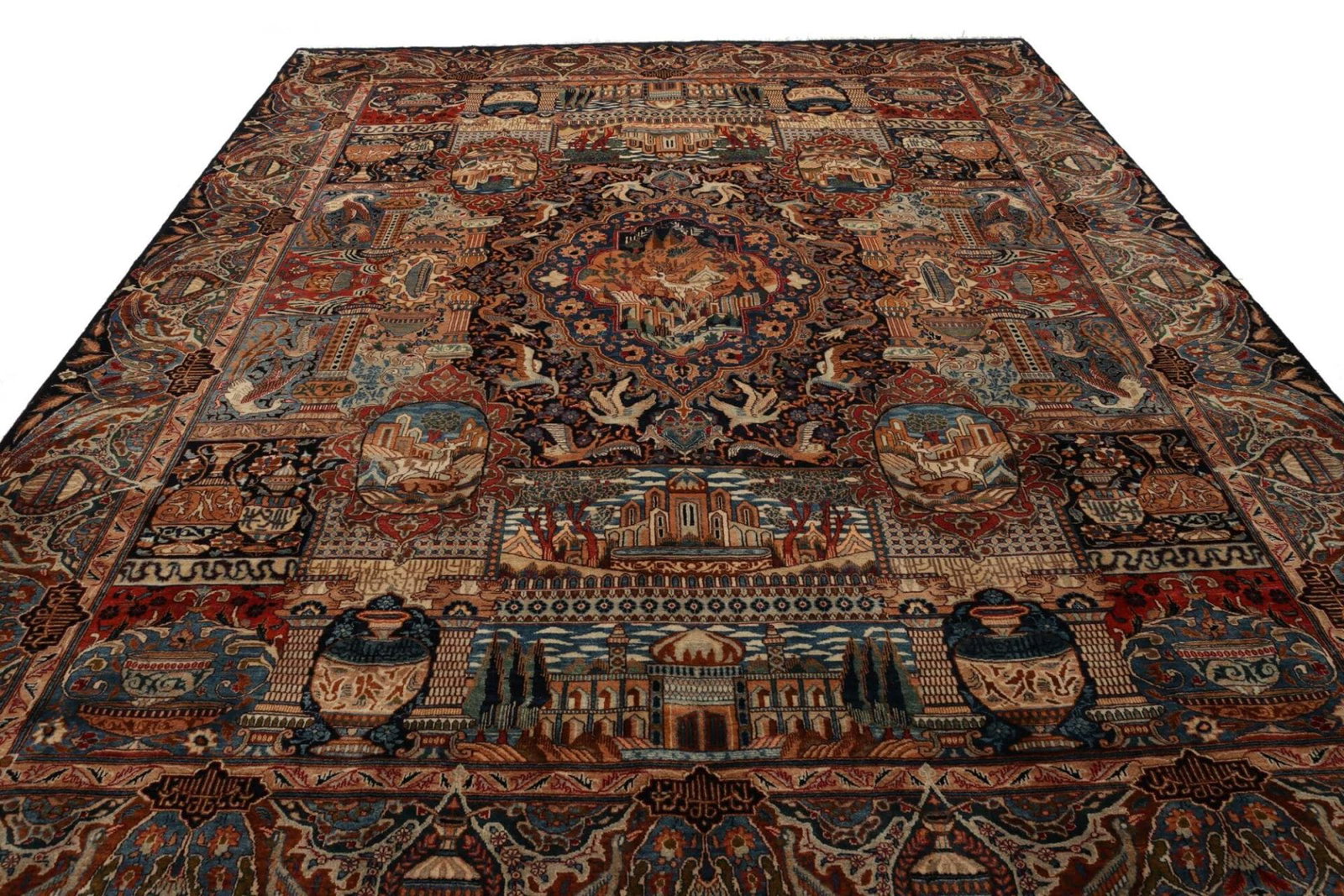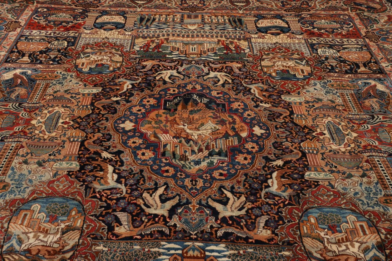 Der Kashan Teppich stammt aus der gleichnamigen Stadt Kashan im Iran, die für ihre exquisite Teppichproduktion bekannt ist. Kashan gilt als eine der traditionsreichsten Teppichstädte des Irans und ihre Teppiche sind für ihre opulente Farbgebung und komplexen Muster berühmt. Die Teppichknüpferei in Kashan hat eine lange Geschichte, die bis ins 16. Jahrhundert zurückreicht. Die Region ist bekannt für ihre floralen Designs, die oft von der Natur inspiriert sind und in ihren lebendigen Farben leuchten.