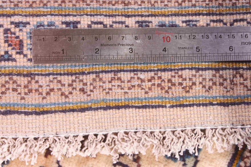 Kashan-Teppich | Knotendichte: 160.000 – 200.000 Knoten/m² | Material: Handgesponnene Wolle | Größe: 298×203 cm | Zustand: Neuzeitlich (0-20 Jahre) | Herkunft: Iran/Persien | Farbe: Weiß/Beige | Verarbeitung: Handgeknüpft | Dicke: ca. 10 mm | Gewicht: ca. 16 kg