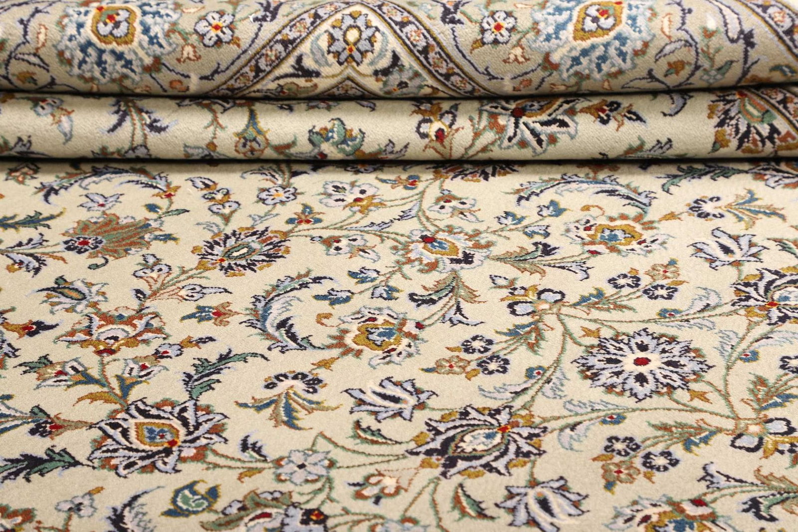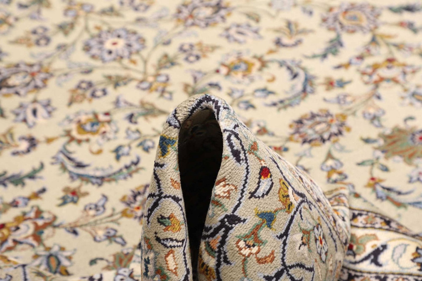Eine der herausragendsten Eigenschaften des Kashan Teppichs ist das verwendete Material. Der Teppich ist aus feiner Schurwolle gefertigt, die für ihre Langlebigkeit, Wärme und den hohen Tragekomfort bekannt ist. Schurwolle besitzt natürliche Eigenschaften, die das Raumklima regulieren und gleichzeitig Schmutz und Staub abweisen. Der handgeknüpfte Teppich zeichnet sich durch seine hohe Knotendichte aus, die nicht nur für eine exquisite Optik sorgt, sondern auch die Widerstandsfähigkeit des Teppichs erhöht. Ein solcher Teppich kann generationenlang Freude bereiten, ohne an Schönheit zu verlieren.