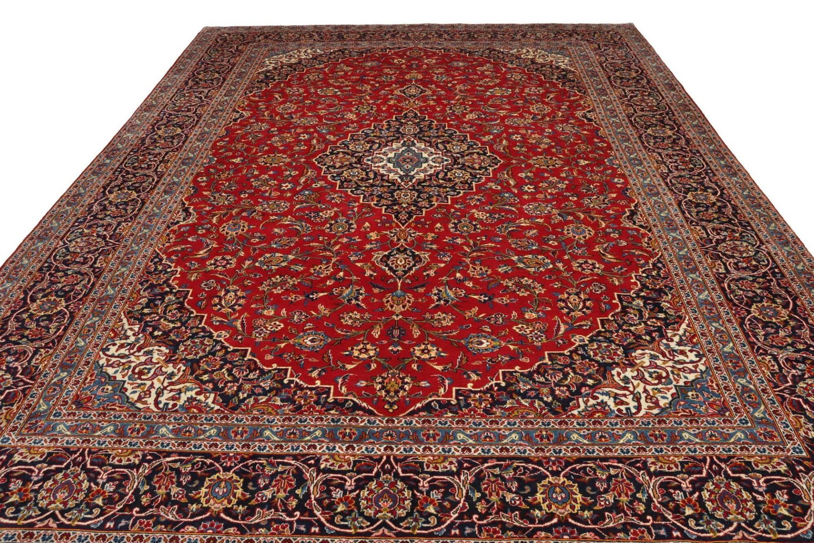 Kashan Teppich 303 x 400 cm, florale Muster, Schurwolle, handgeknüpft