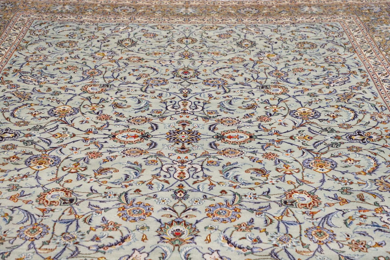 Kashan Teppich 306 x 410cm, florale Muster, handgeknüpft, Perserteppich