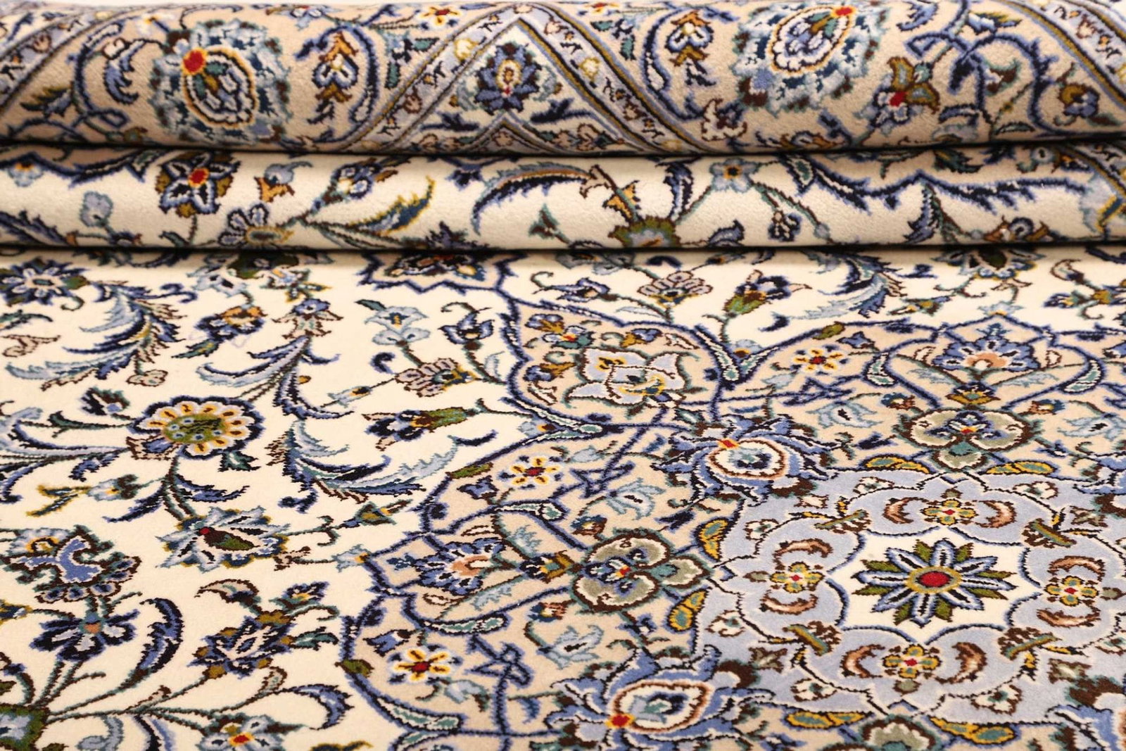 Dieser Kashan Teppich ist aus bester Schurwolle hergestellt, einem Material, das für seine hervorragenden Eigenschaften bekannt ist. Schurwolle ist nicht nur warm und weich, sondern auch strapazierfähig und pflegeleicht. Die handgeknüpfte Technik sorgt für eine beeindruckende Knotendichte, die zur Langlebigkeit des Teppichs beiträgt. Diese Qualität wird durch die hohe Anzahl an Knoten pro Quadratmeter erreicht, was typischerweise bei persischen Teppichen vorkommt. Die Liebe zum Detail und die Exzellenz der Handwerkskunst werden in jedem einzelnen Knoten sichtbar, was den Teppich zu einem Gesprächsthema in jedem Raum macht.