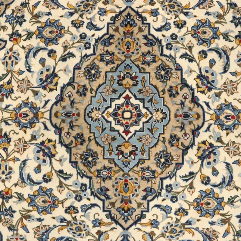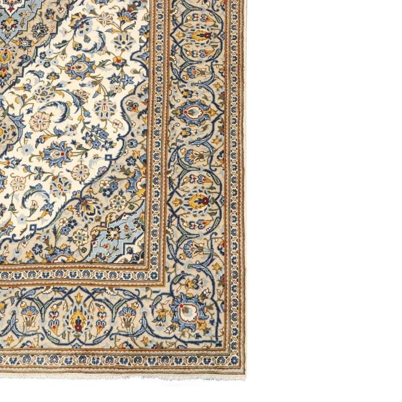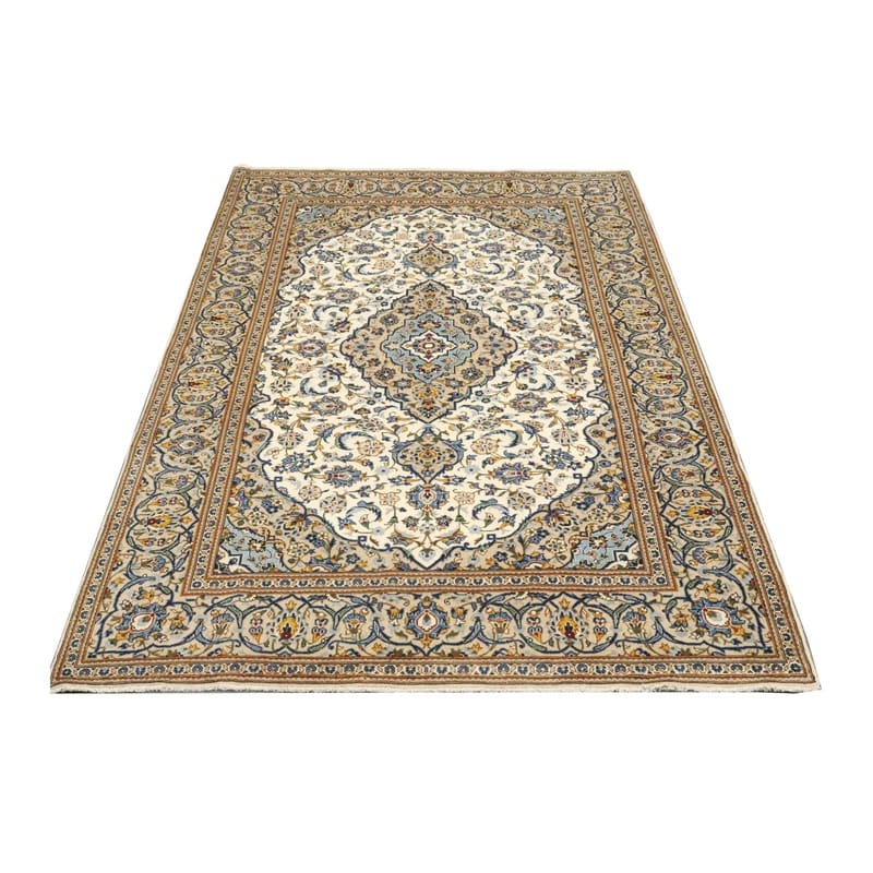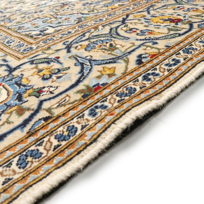 Kashan Teppich 314×201 cm, cremefarben mit Blumenmuster, handgeknüpft